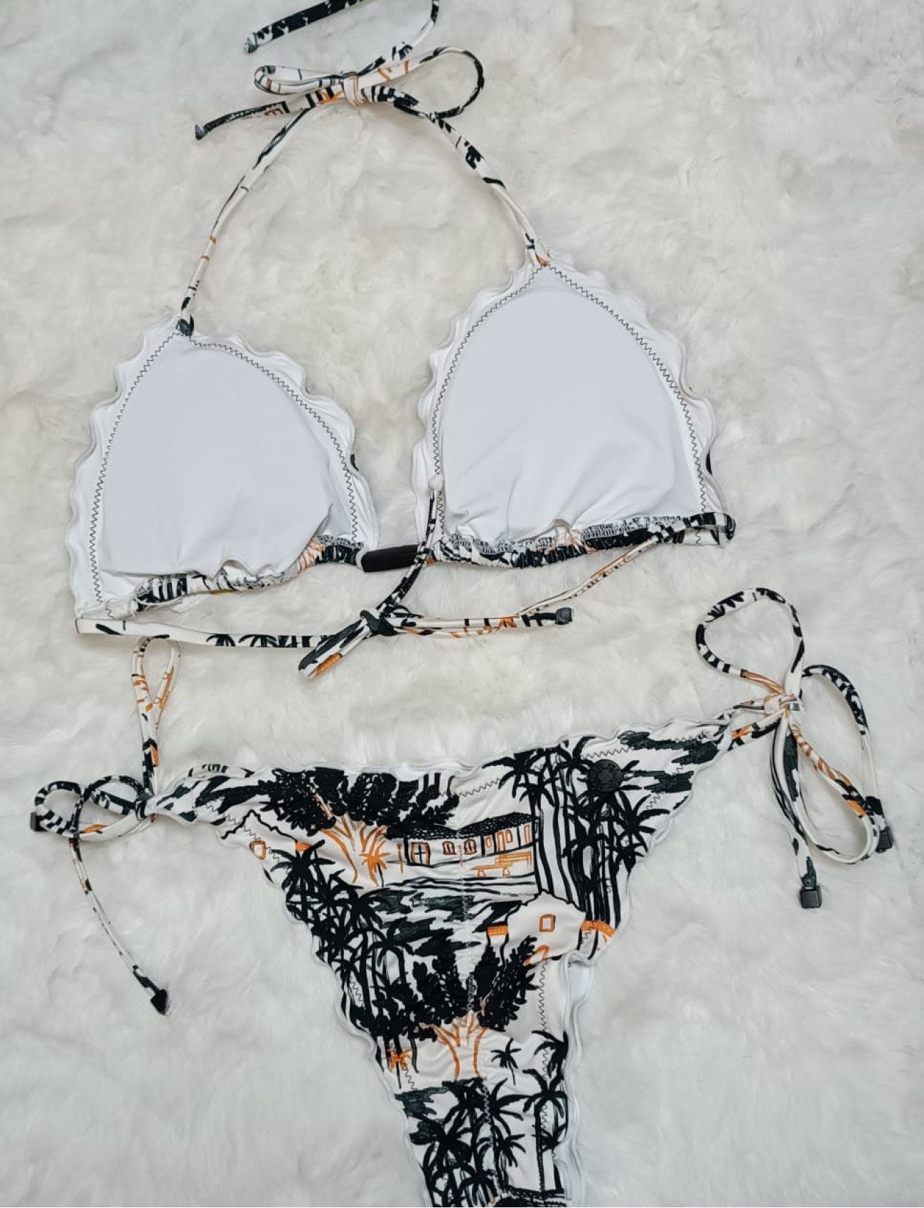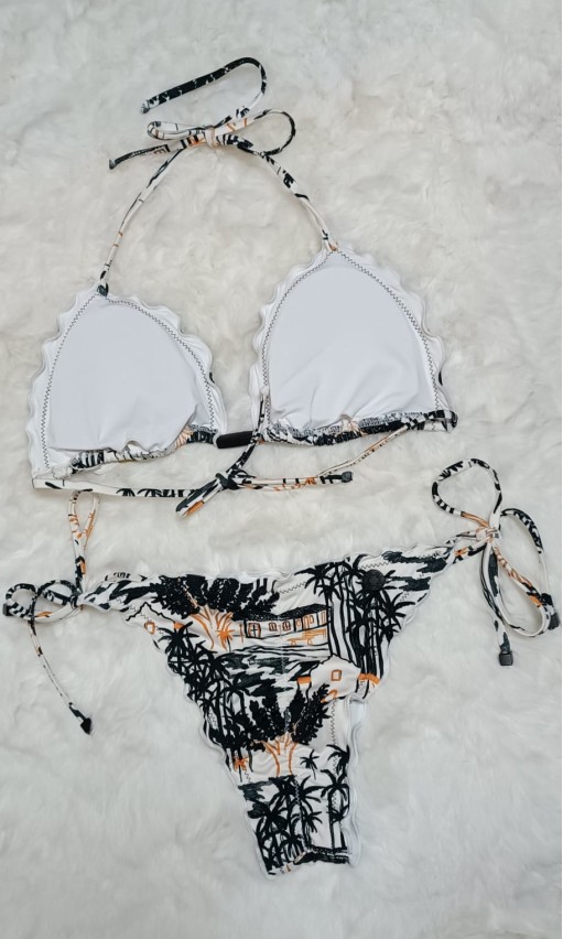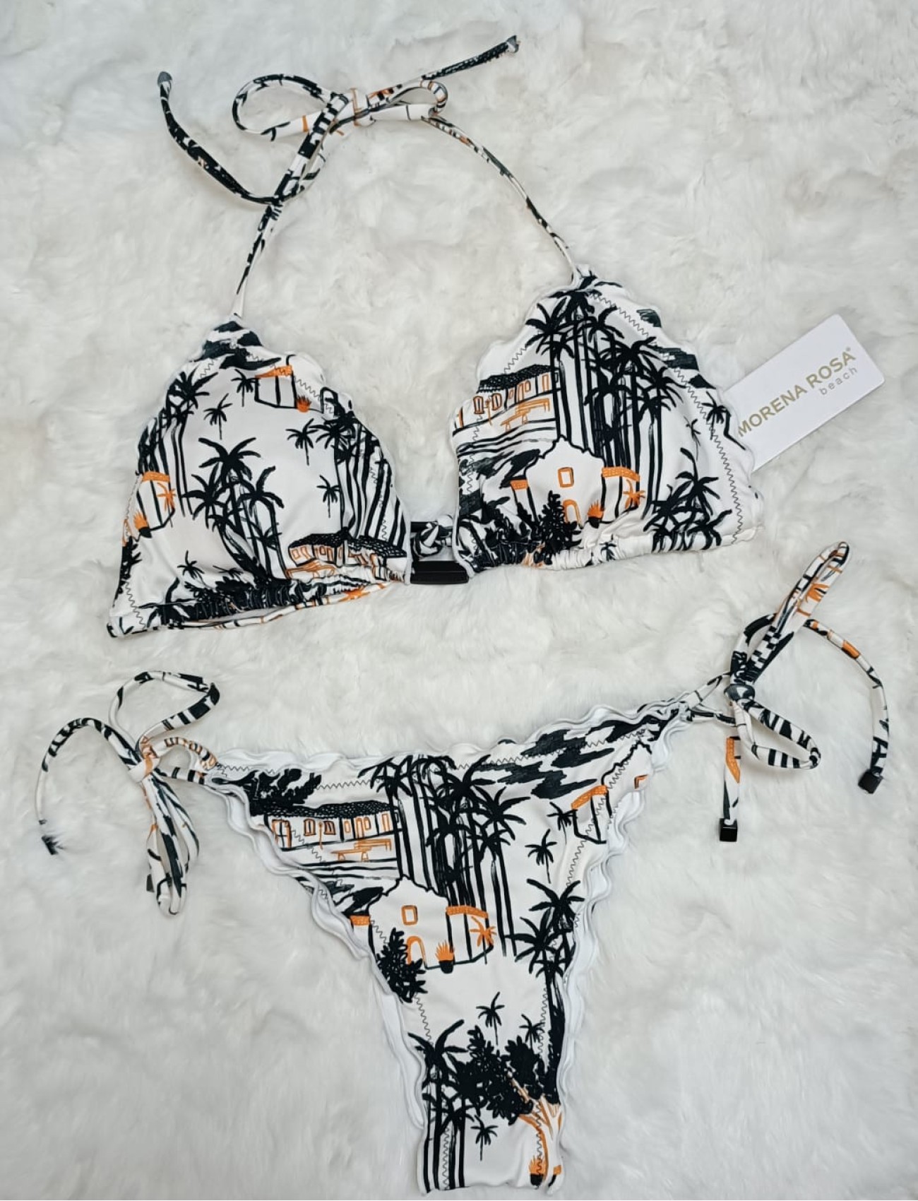 A calcinha acompanha o design elegante, com laterais médias e caimento anatômico que realça a silhueta com naturalidade. Confeccionado em tecido leve, elástico e de secagem rápida, o conjunto é ideal para curtir a praia ou piscina com estilo e praticidade.