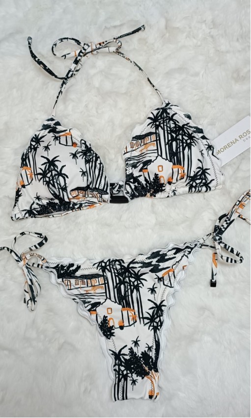 O Biquíni Cortininha Ripple Com Detalhe Transpassado Morena Rosa une charme, conforto e estilo em um modelo sofisticado. O top cortininha com bojo removível apresenta efeito ripple que valoriza as curvas de forma natural, enquanto o detalhe transpassado frontal adiciona modernidade e delicadeza à peça. As amarrações ajustáveis no pescoço e nas costas garantem encaixe perfeito e conforto durante o uso.