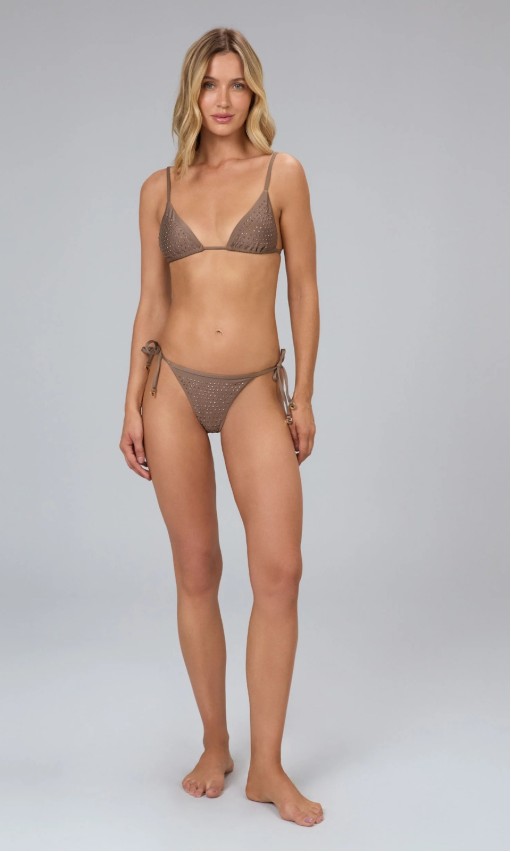 Dica de estilo: combine com saída de praia fluida e acessórios metálicos prateados para realçar o brilho do strass e compor um look moderno e refinado.
