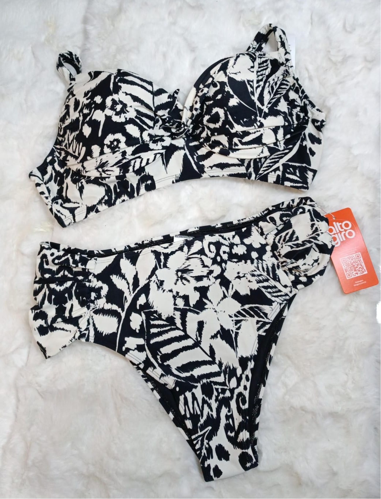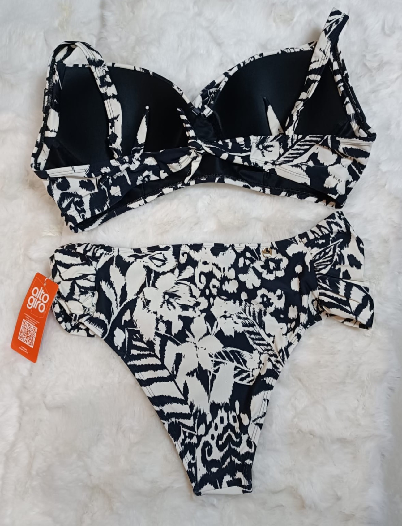 O Biquíni Plus Size Transpassado Estampado Ikat Alto Giro é perfeito para unir conforto, estilo e sofisticação em uma peça versátil. O top transpassado valoriza o busto, criando um efeito visual elegante e feminino, enquanto a estampa Ikat confere personalidade e modernidade ao look.