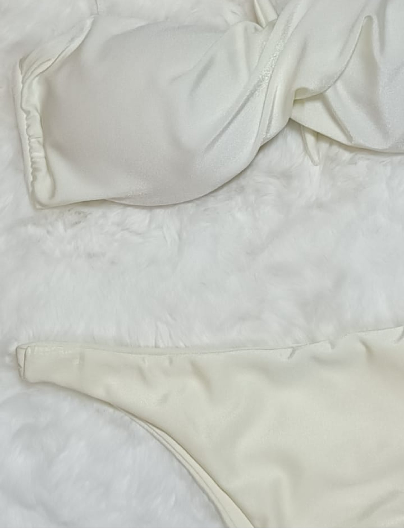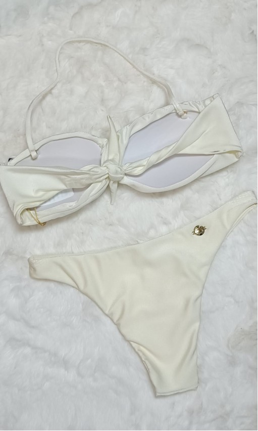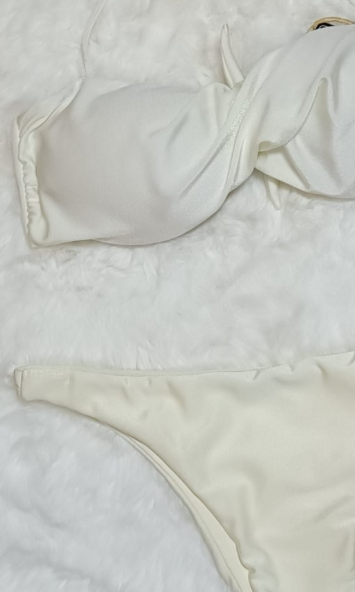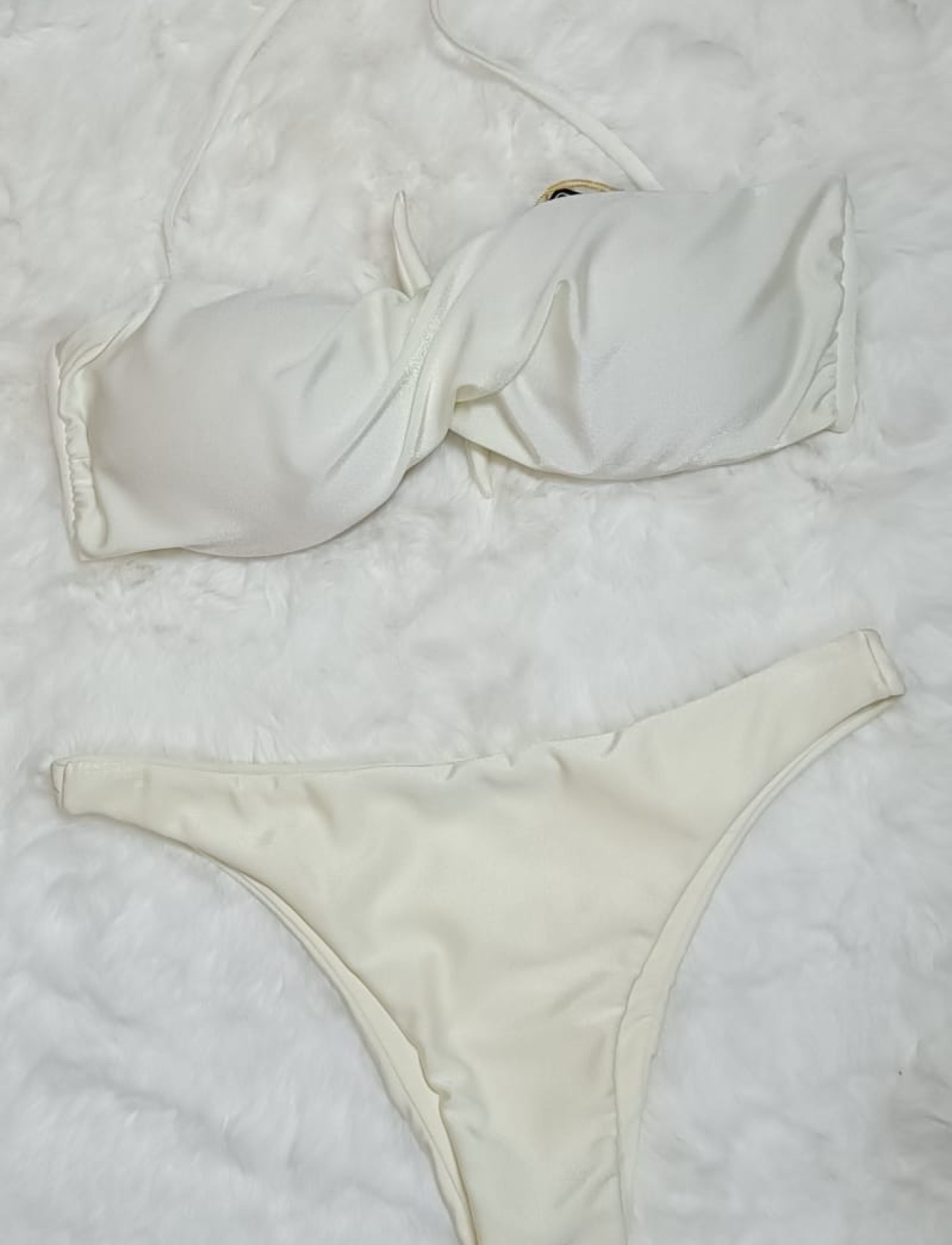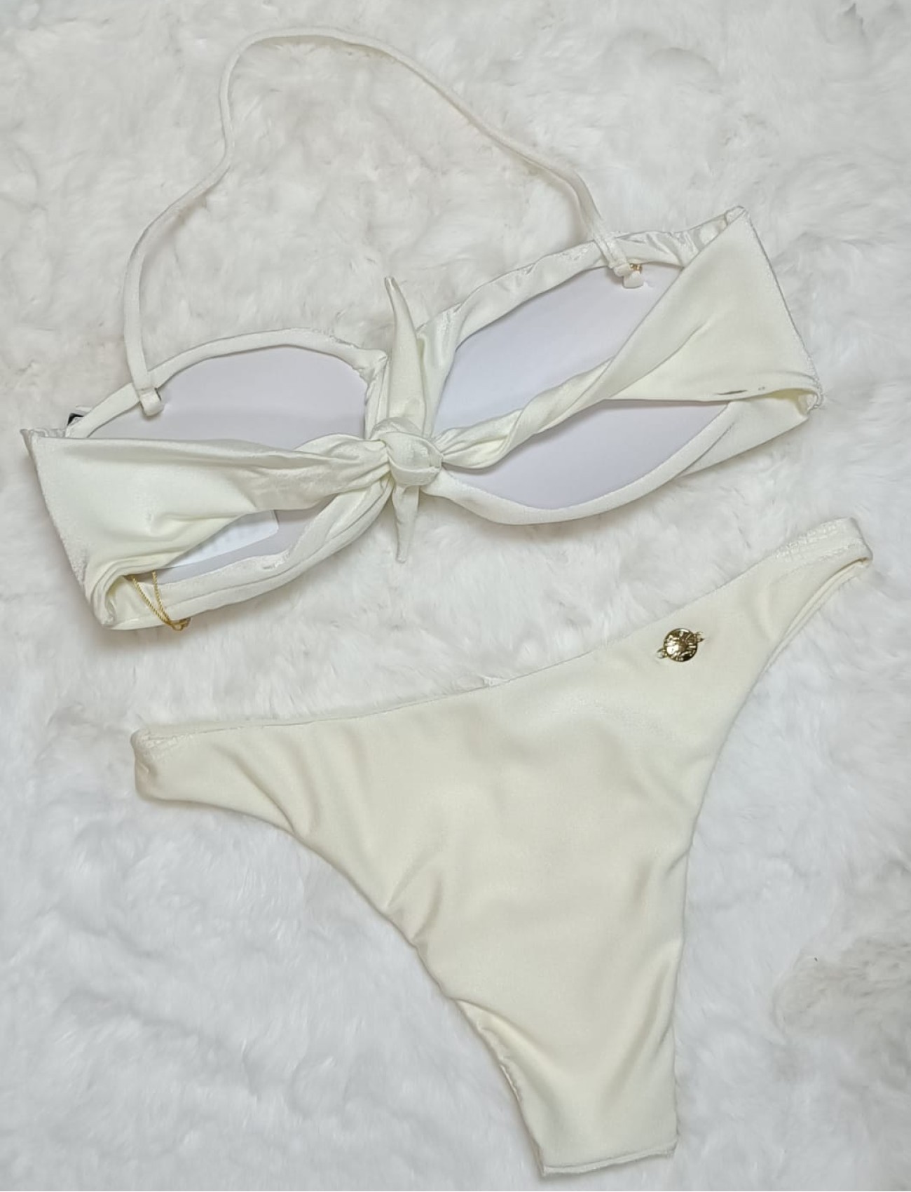A calcinha acompanha a proposta refinada, com laterais médias e caimento anatômico que realça as curvas de maneira natural. Confeccionado em tecido elástico, macio e de secagem rápida, o biquíni proporciona praticidade e estilo para os dias de sol.