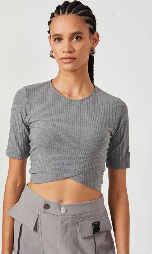 Blusa estilo cropped, com detalhe de transpasse na frente, dando total charme a peça.