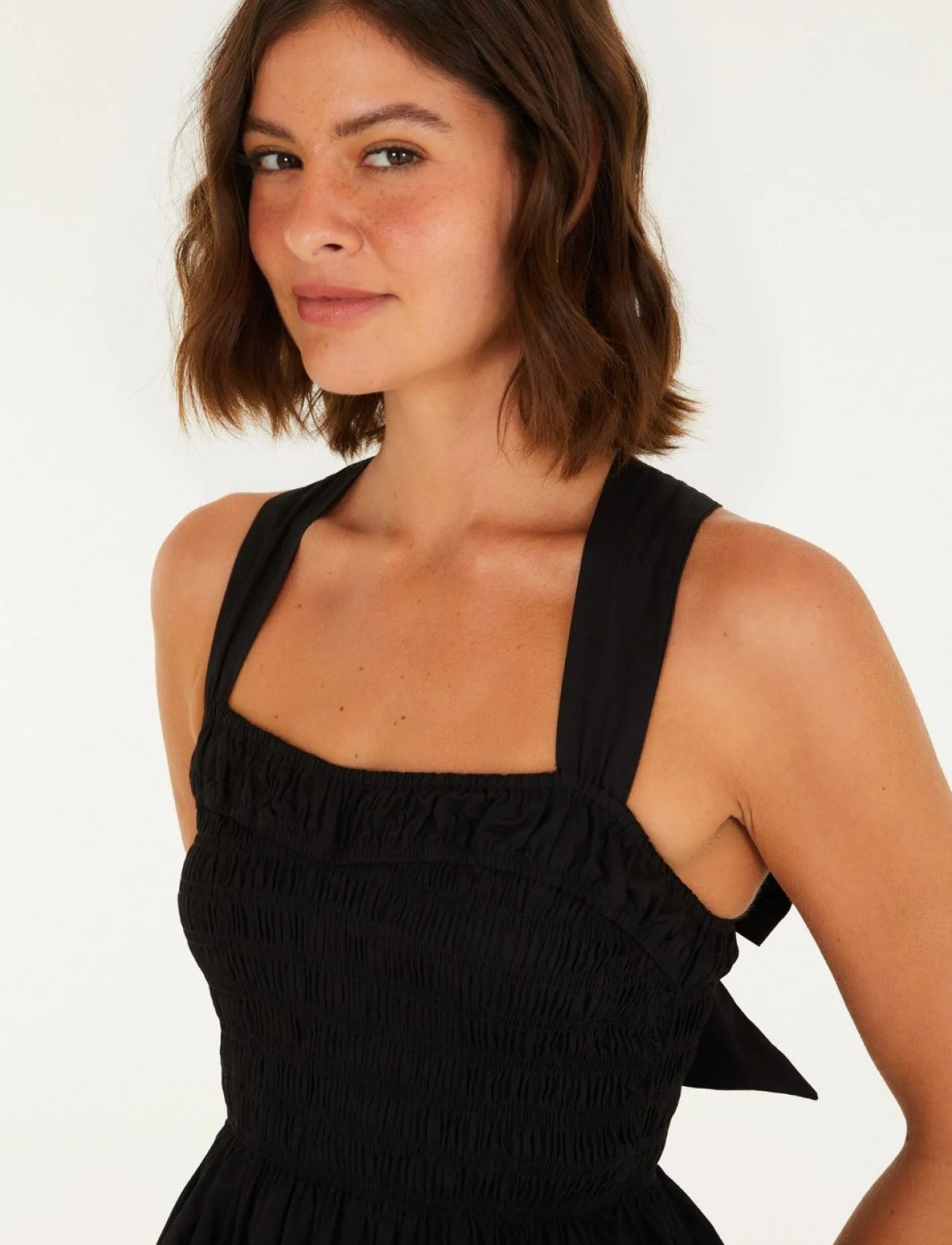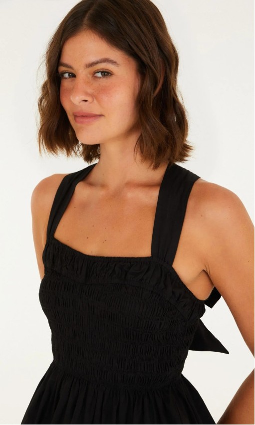 Com alcinhas finas (ou mangas, se aplicável) e estampa ou cor vibrante, ela é perfeita para dias de sol, passeios ou composições leves e estilosas.