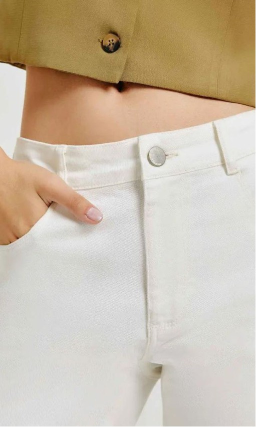 Feita em sarja de algodão com elastano, garante maior flexibilidade em um visual versátil para qualquer ocasião.