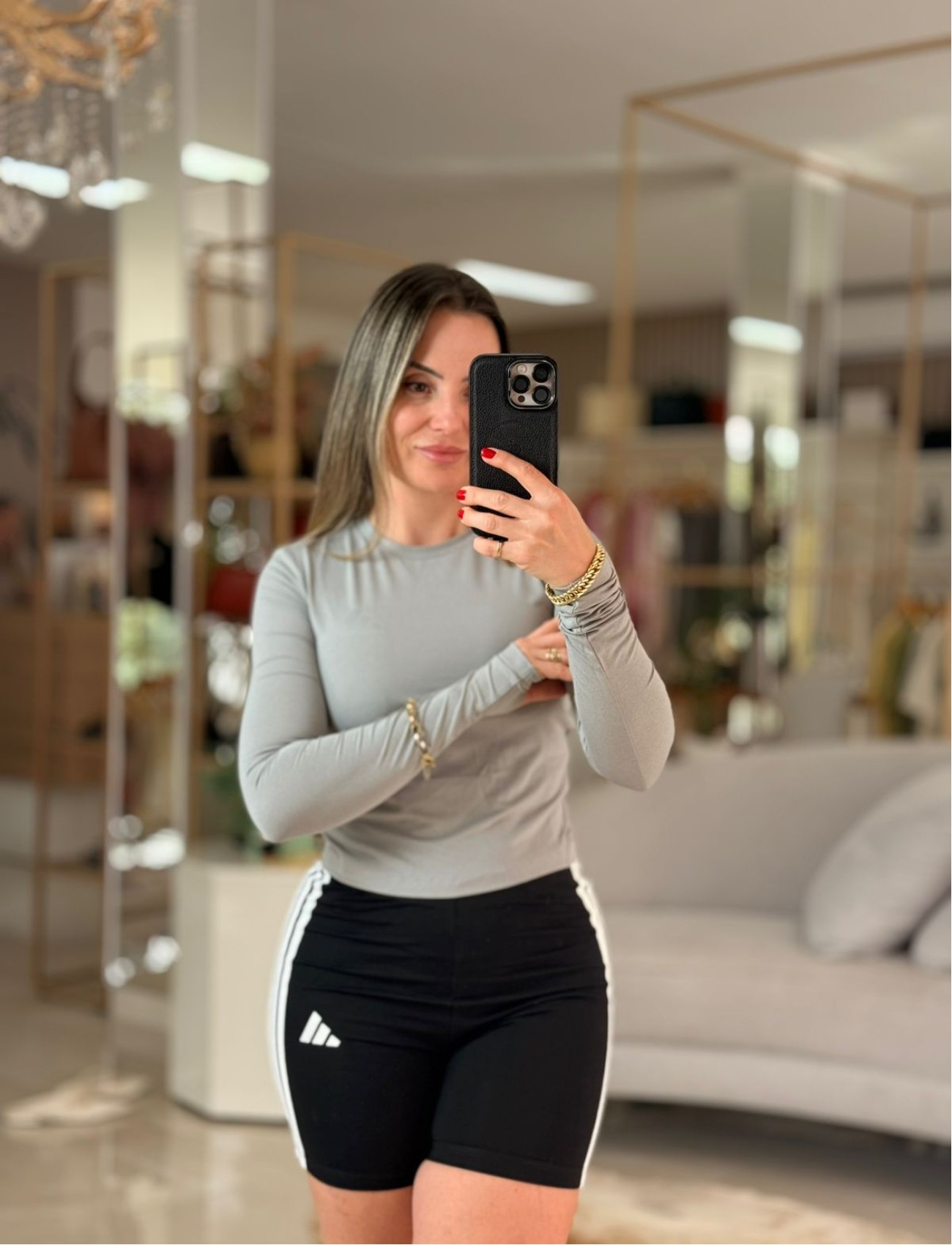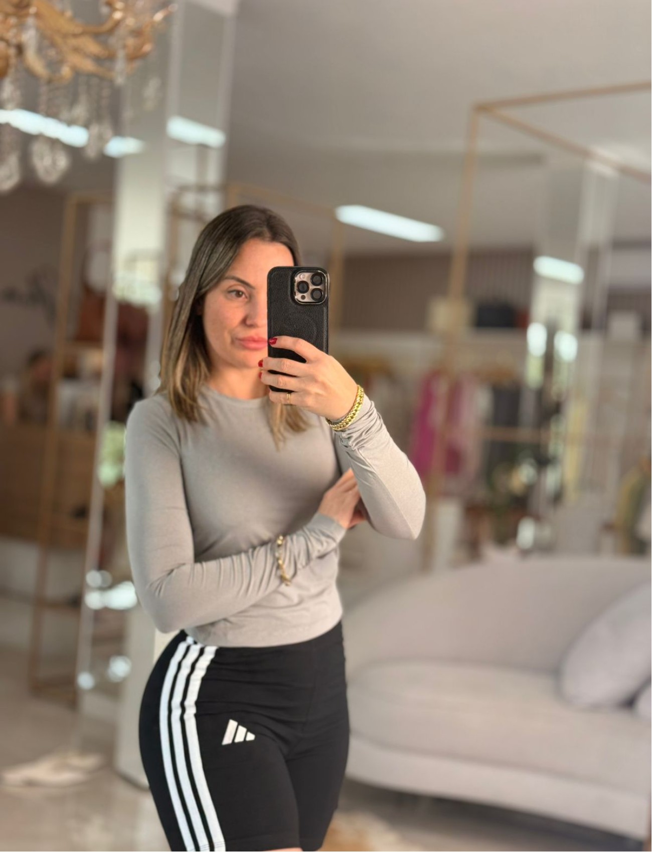 Camisa Manga Longa Essential Cinza Adidas Ref 16790