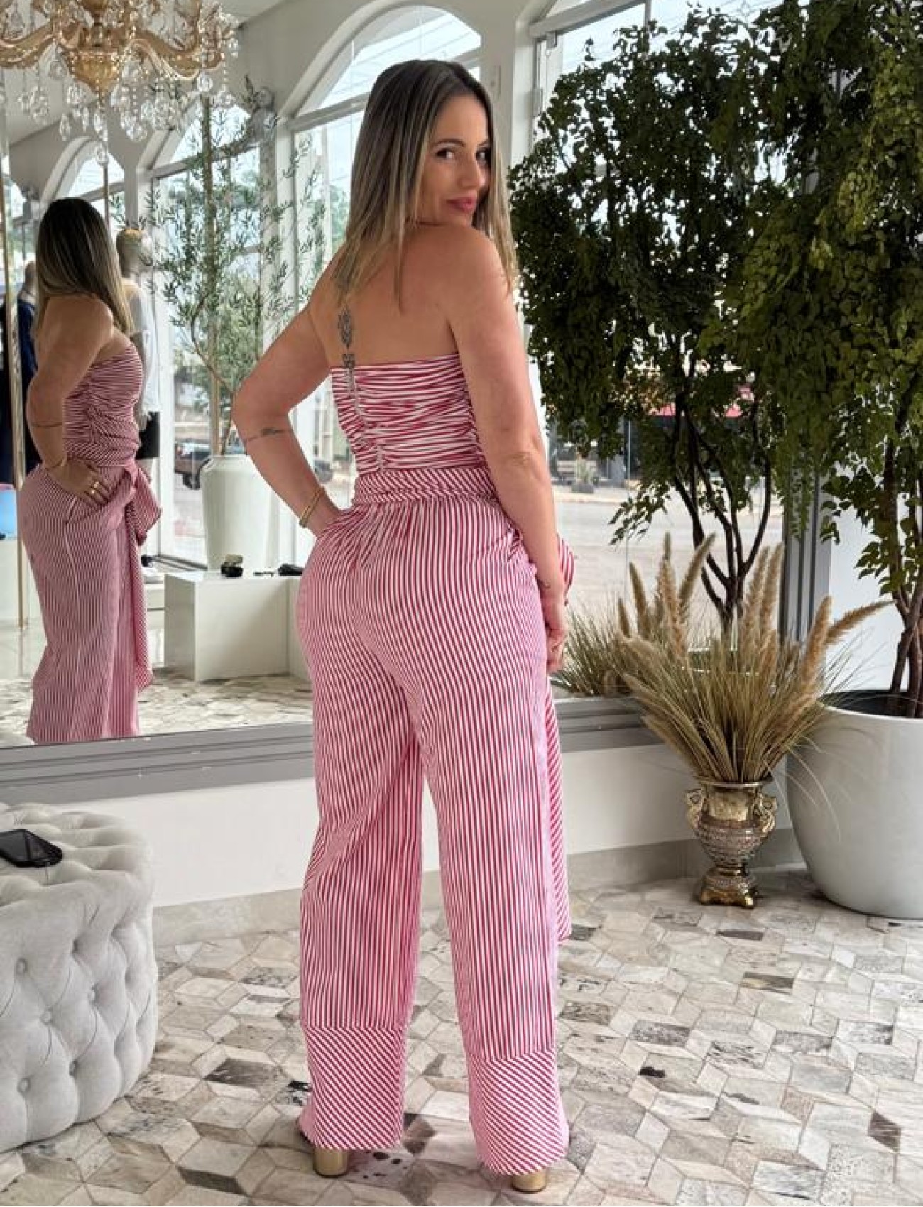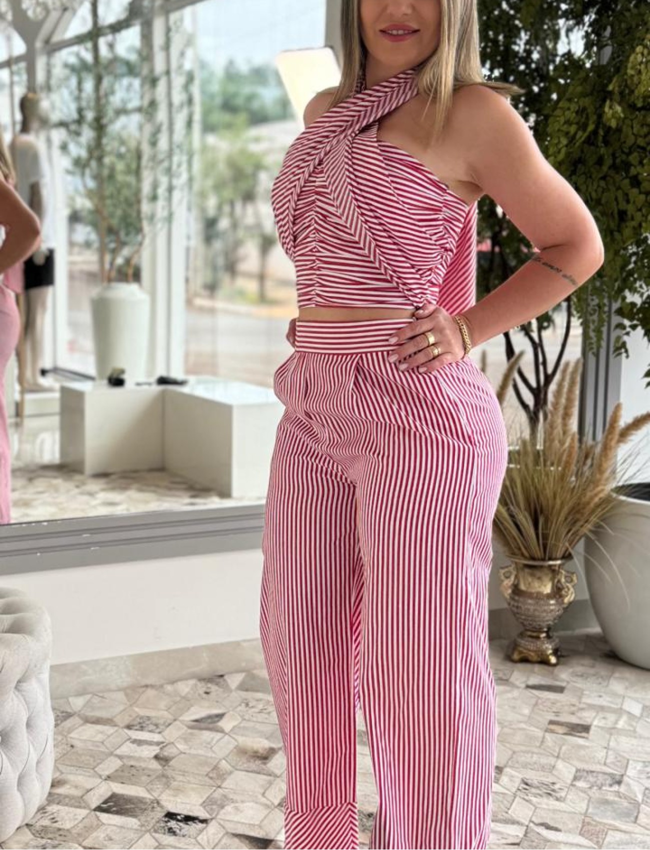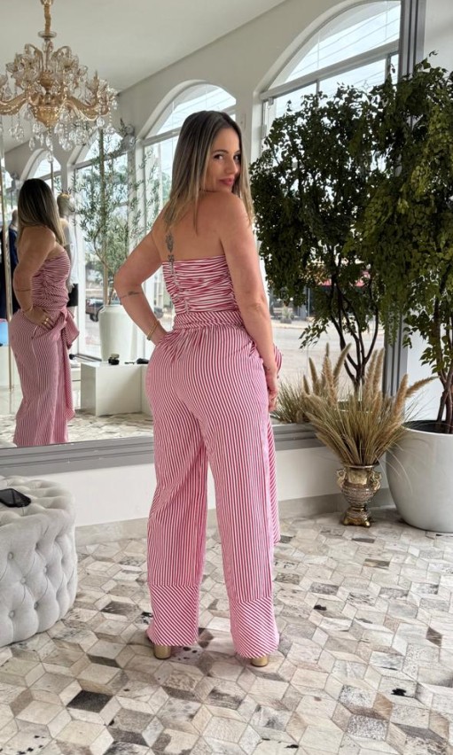 O Coordenado Top e Calça Carlota Costa Listrado Vermelho é a combinação perfeita entre elegância e descontração. O conjunto apresenta estampa listrada em tons vibrantes de vermelho e branco, que adiciona um toque moderno e cheio de personalidade ao visual.