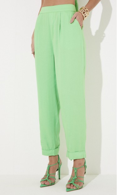 Cor Verde .Marca Carlota Costa.Calça de alfaiataria, uma calça atemporal e uma escolha versátil..