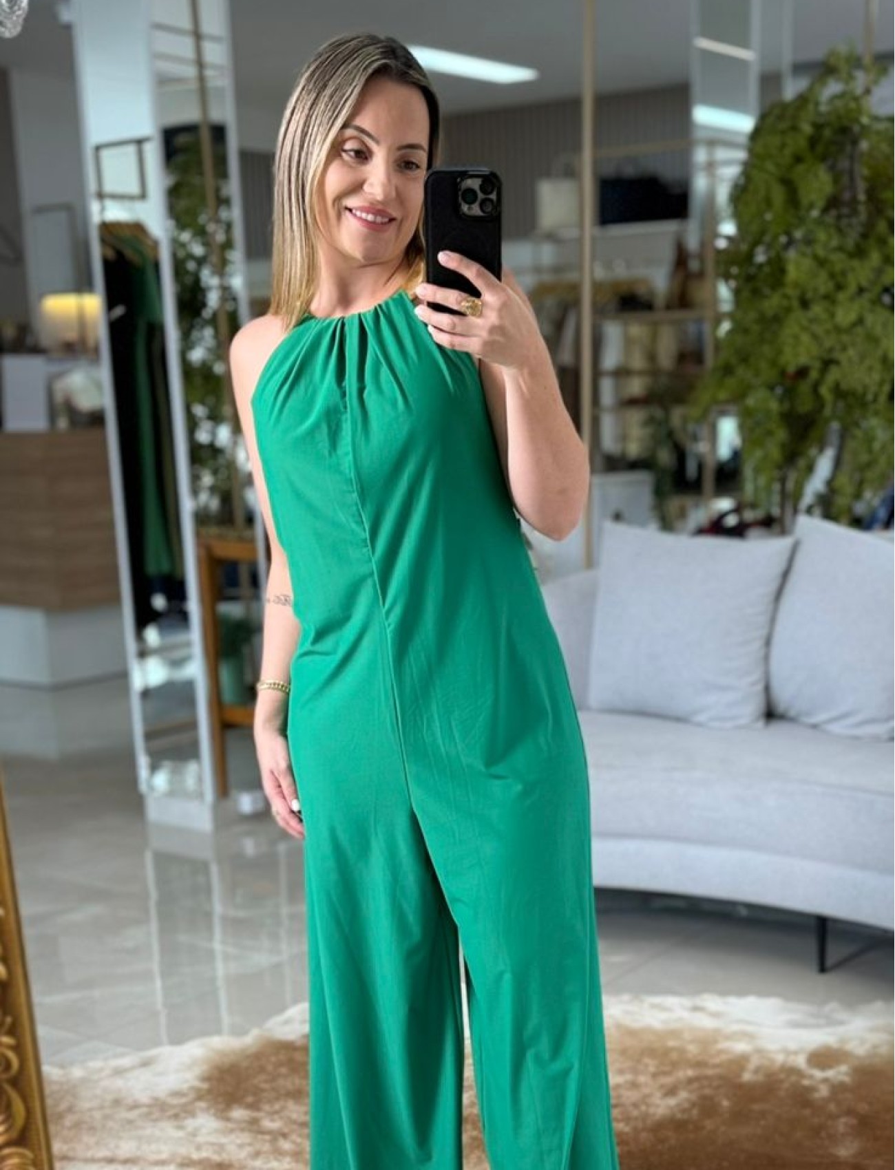 Elegante e contemporâneo, o macacão longo Lança Perfume aposta em uma modelagem clean e sofisticada. Sem mangas, valoriza a silhueta com leveza, enquanto o caimento alongado garante um visual imponente e versátil. Confeccionado em tecido de toque macio e caimento impecável, é a escolha ideal para produções noturnas e ocasiões especiais que pedem estilo e sofisticação.