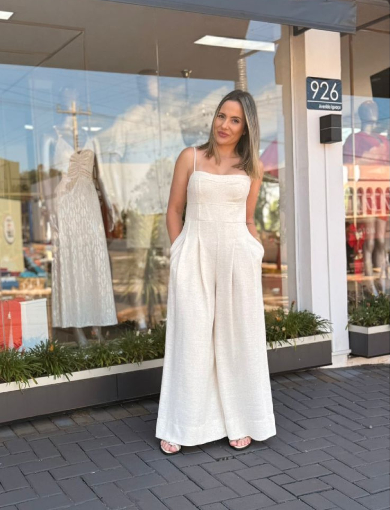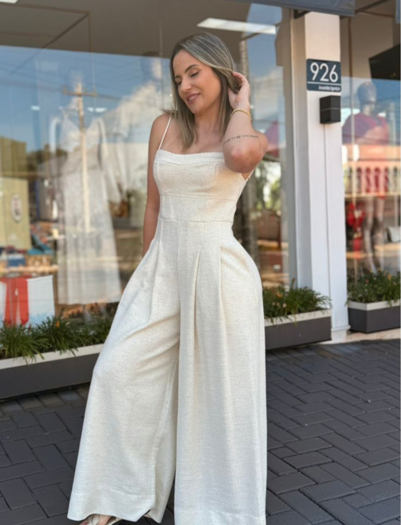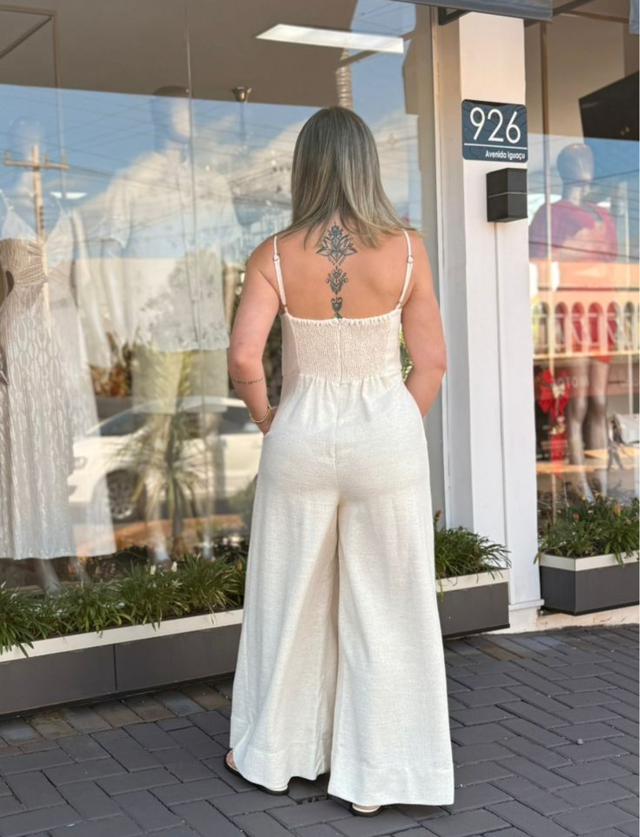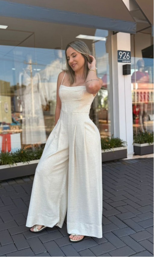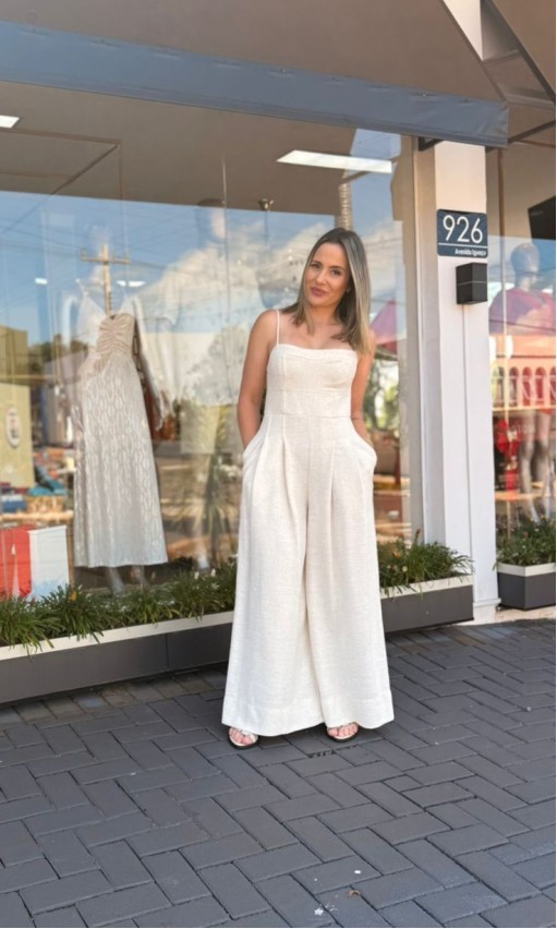Combine com sandálias de salto, botas de cano curto ou tênis, e acessórios minimalistas para um visual contemporâneo e equilibrado. Um macacão versátil que traduz elegância descomplicada e atitude com estilo FARM.