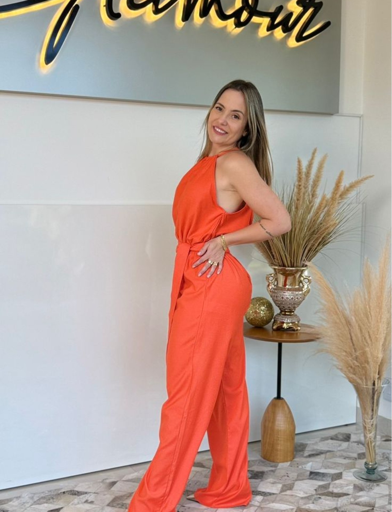 O Macacão Sommer Laranja Disco é uma peça moderna e cheia de atitude, ideal para quem busca um visual marcante com toque fashion. Confeccionado em tecido leve e confortável, ele oferece caimento fluido e sofisticado, acompanhando os movimentos com naturalidade.