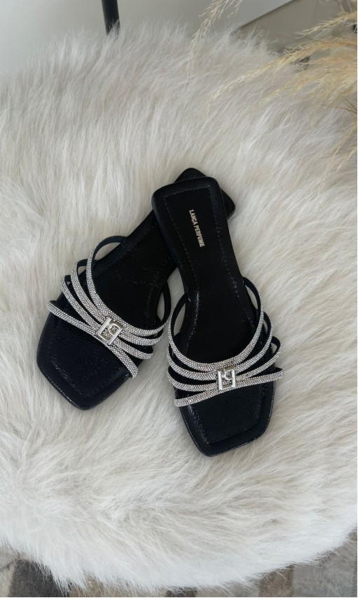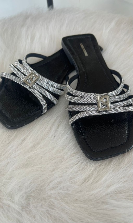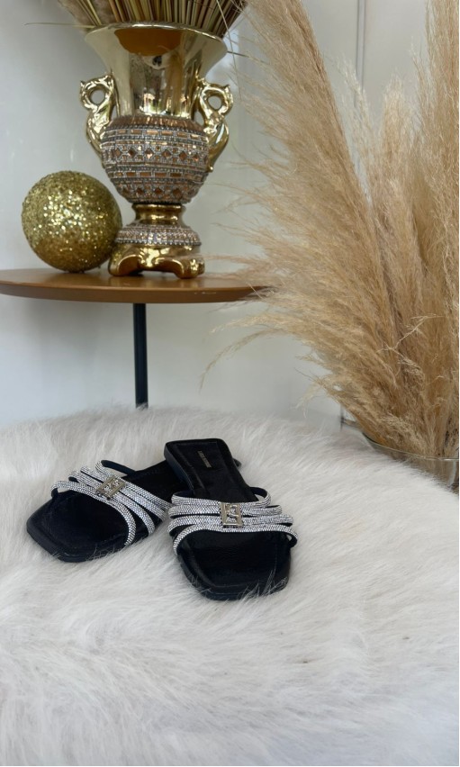 A Rasteira Strass E Lança Perfume é sinônimo de elegância e brilho em cada passo. Com design minimalista e sofisticado, o modelo apresenta tiras finas adornadas por aplicações de strass, que iluminam o visual com um toque delicado e feminino.