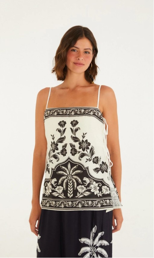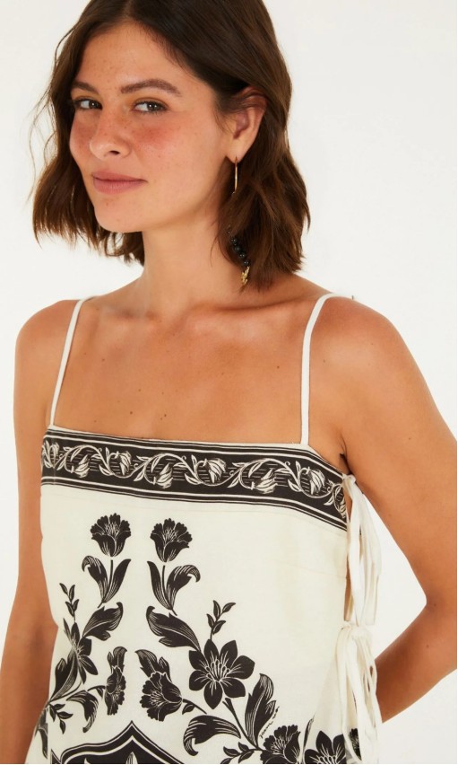 Leve e cheia de bossa, a Regata Amarrações Guanascaste é perfeita para looks descomplicados e estilosos. Confeccionada em tecido fluido, traz estampa exclusiva da Farm que celebra a natureza em cores vibrantes. O destaque fica por conta das amarrações frontais, que adicionam charme e permitem ajustar o caimento de forma moderna e feminina.