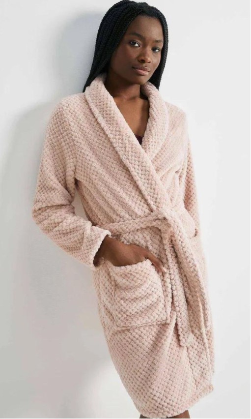 Roupão com uma proposta mais clássica, feminina e delicada, para utilizar como sobreposição nos dias mais frios. Roupão quentinho, confortável e que abraça quem o veste.