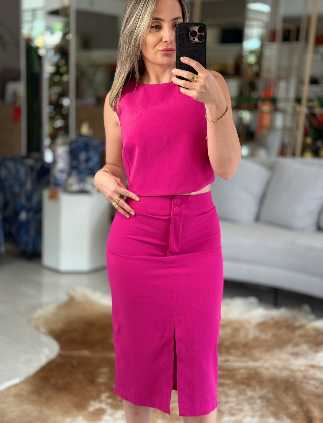 A abertura frontal adiciona charme e movimento à peça, garantindo conforto e um detalhe atual ao design. O comprimento midi reforça a proposta elegante, tornando a saia perfeita para looks que transitam do casual chic ao mais refinado, conforme a combinação.