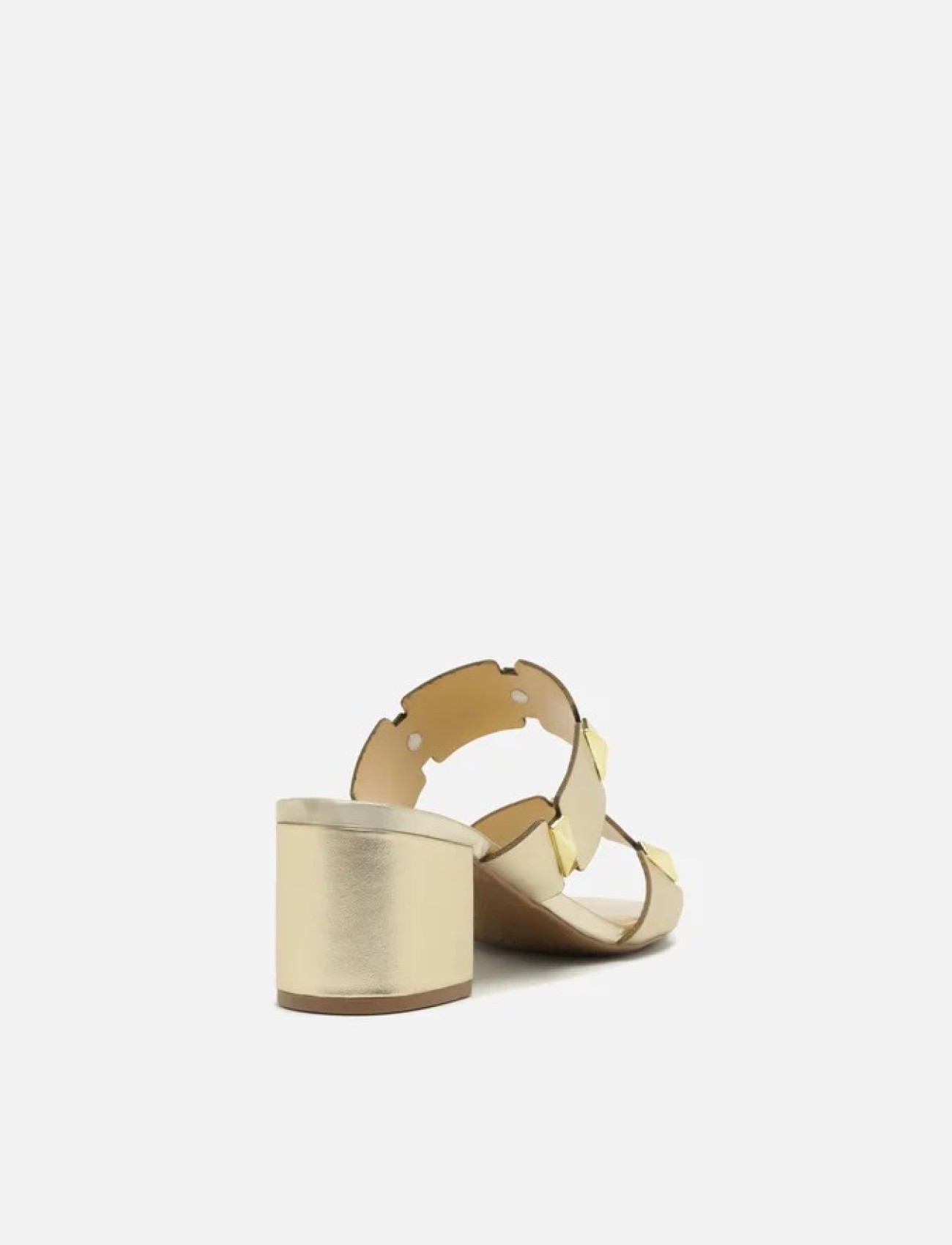 O salto médio proporciona estabilidade e conforto, enquanto as tiras delicadas valorizam os pés com feminilidade e charme.