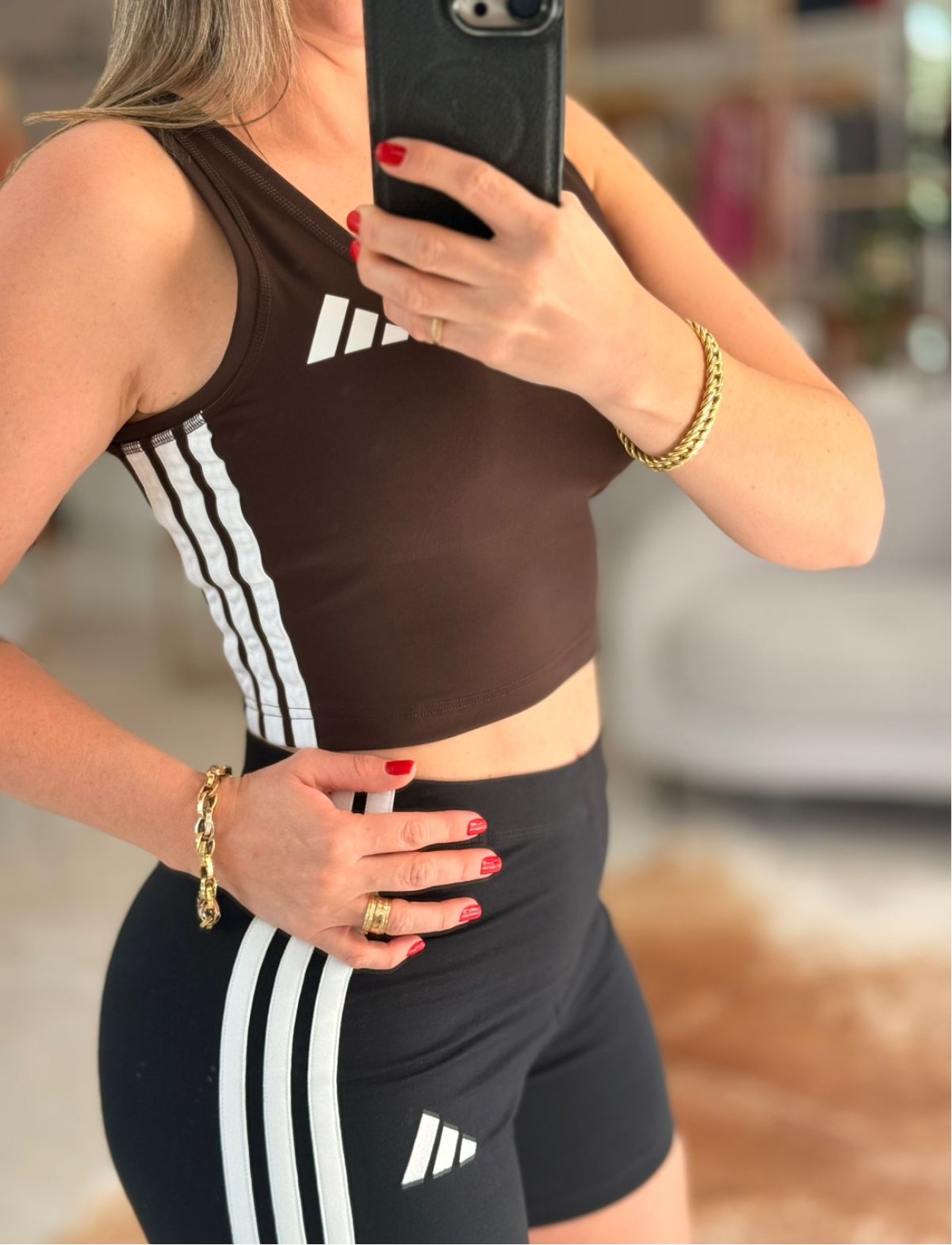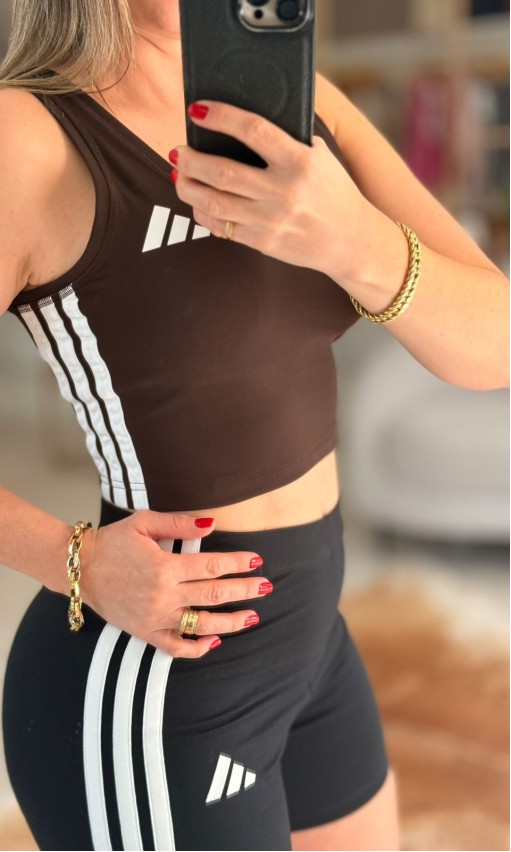 Na cor preta, é uma peça versátil e atemporal, fácil de combinar com tops, camisetas ou jaquetas, criando looks esportivos ou no estilo athleisure.