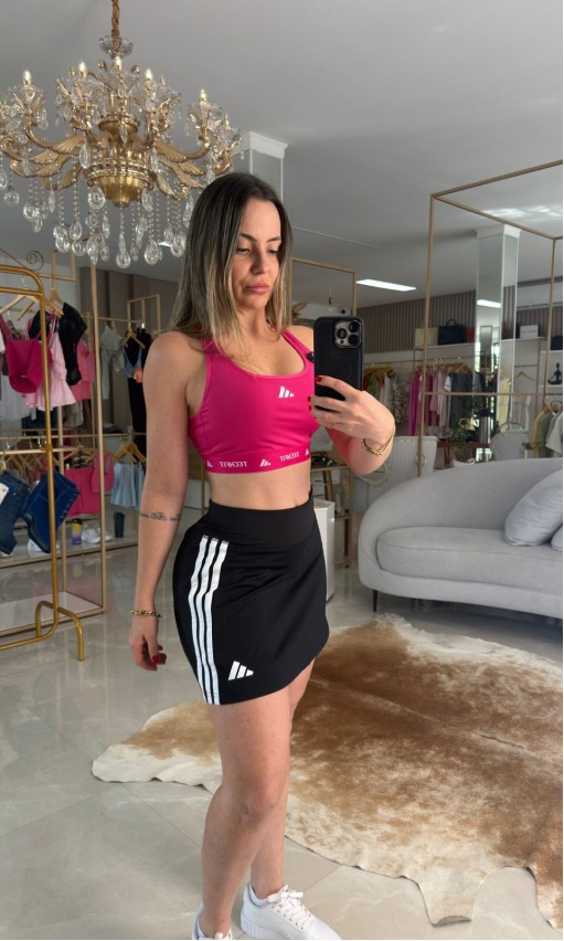 O tom rosa vibrante adiciona energia ao visual, enquanto o elástico personalizado na base reforça o ajuste e o estilo esportivo da peça.