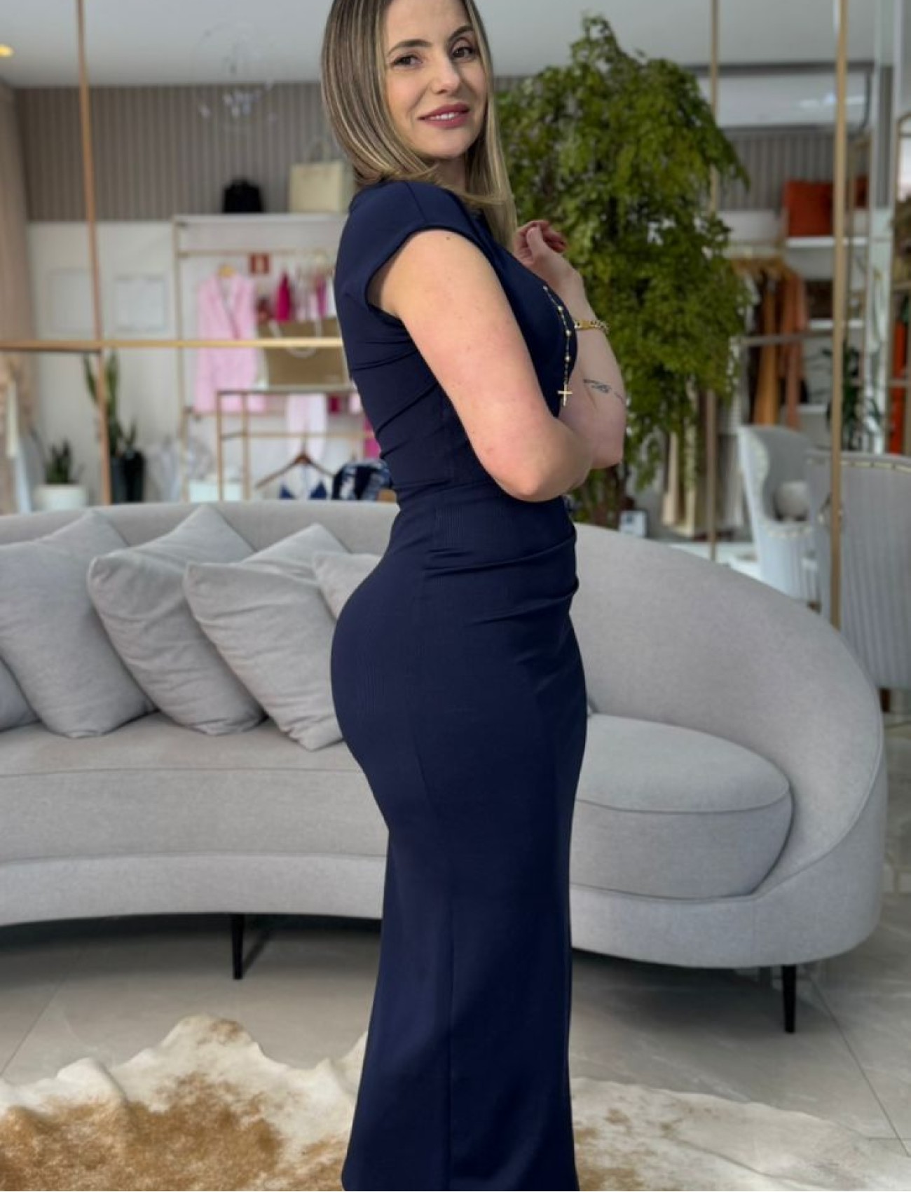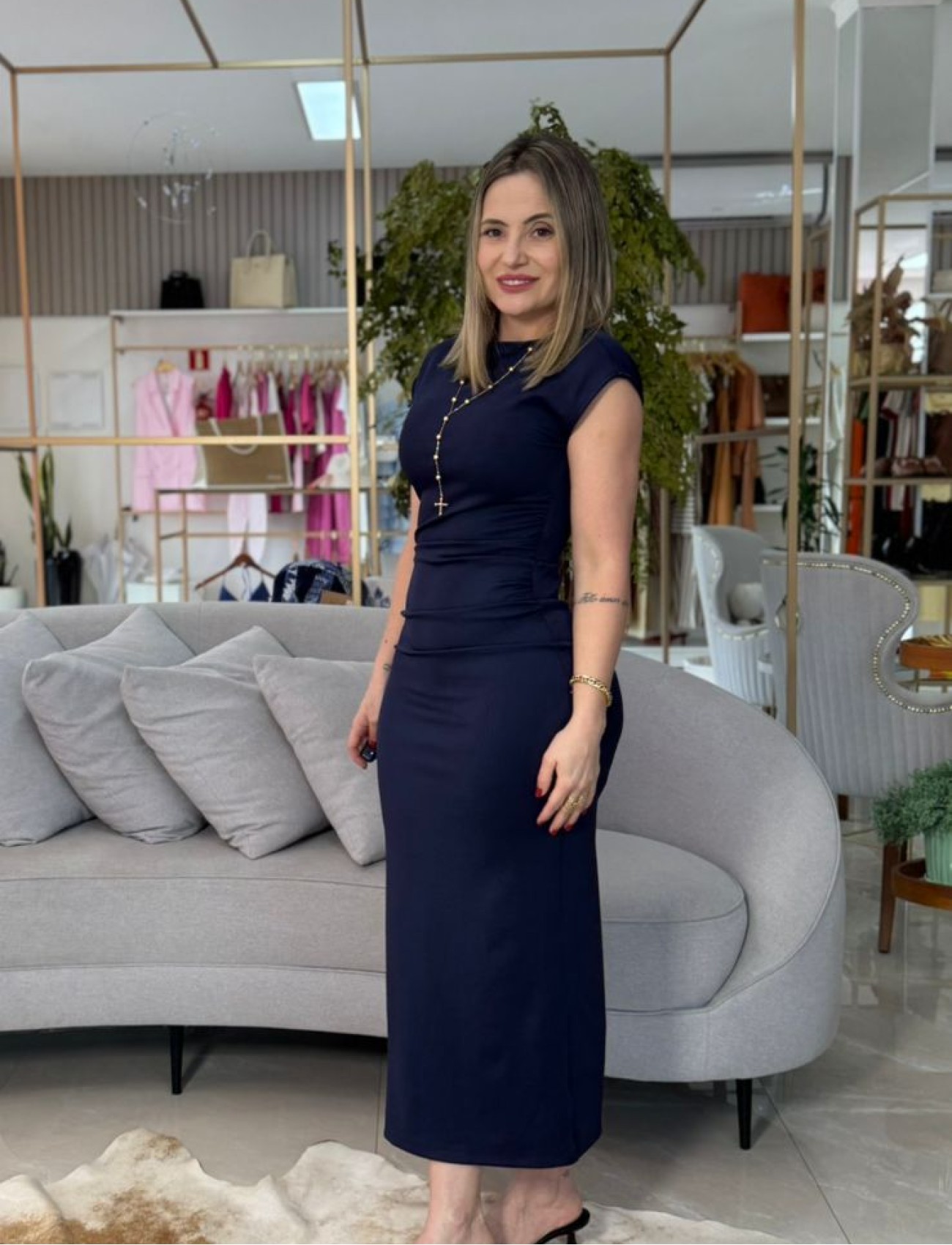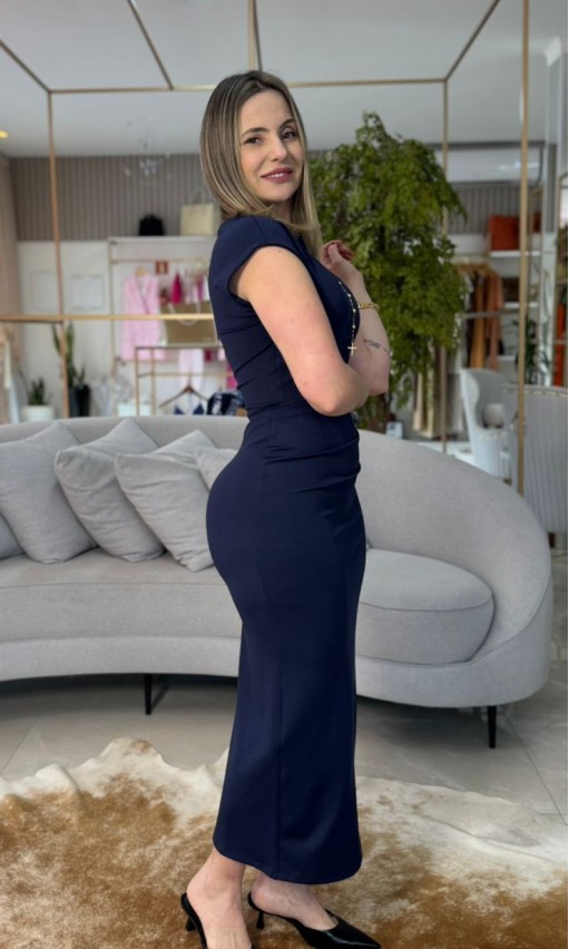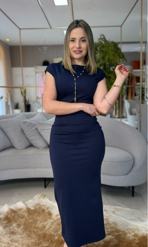 O Vestido de Malha Azul Escuro Carlota Costa une conforto e elegância em uma peça atemporal e versátil. Confeccionado em malha encorpada e macia, possui caimento que valoriza a silhueta com leveza e sofisticação. O tom de azul escuro transmite modernidade e refinamento, tornando o modelo perfeito tanto para produções diurnas quanto noturnas.