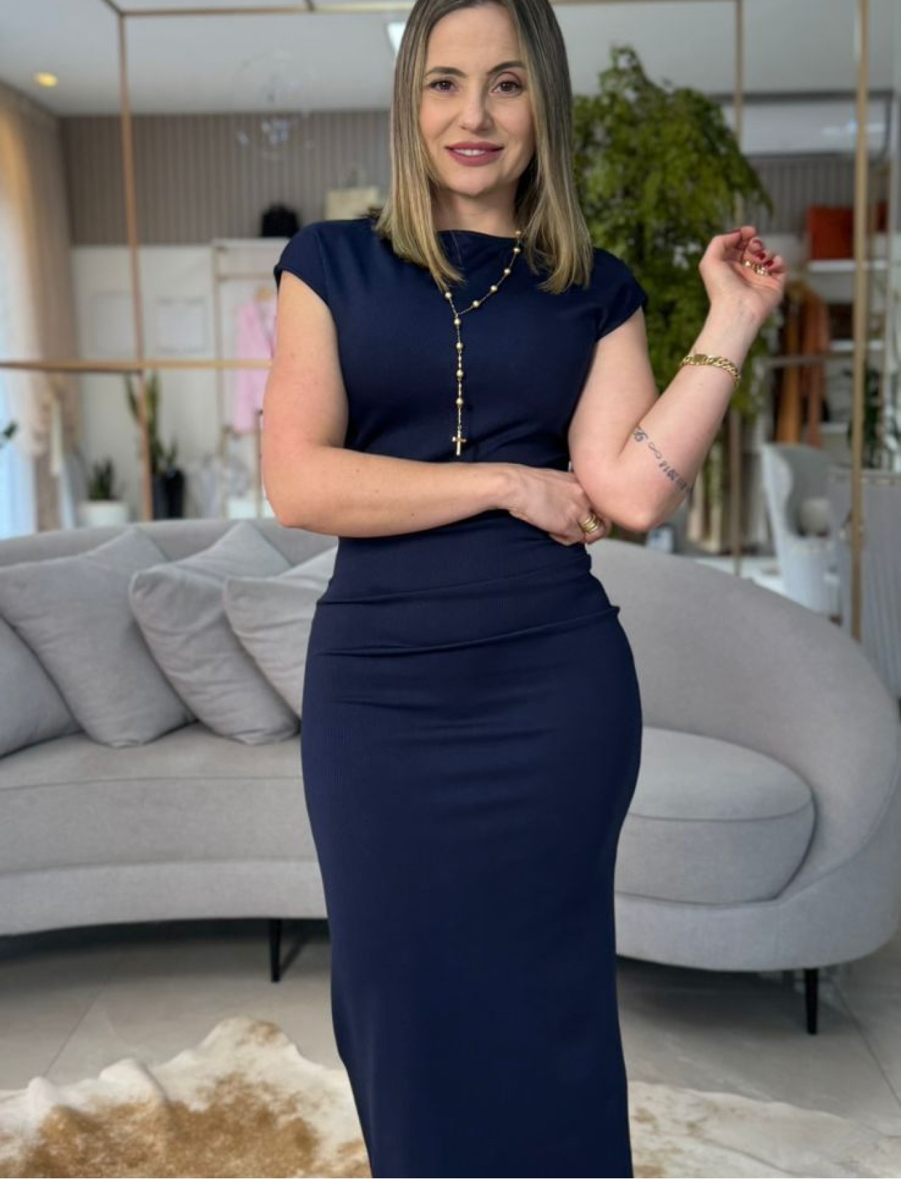 Sugestão de estilo: combine com sandálias de salto e acessórios dourados para um look elegante, ou aposte em tênis branco e jaqueta leve para uma proposta casual e moderna