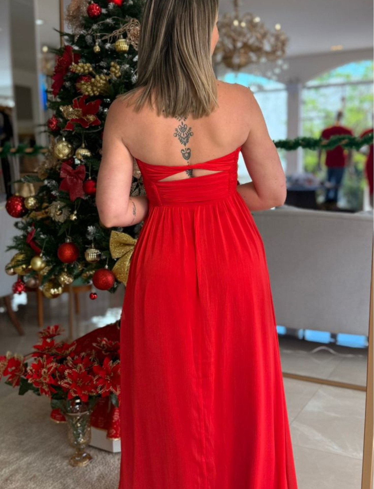 O Vestido Fluido Vermelho Detalhe Frontal da Carlota Costa é uma peça que combina elegância e leveza de forma sofisticada — perfeito para quem busca causar impacto com sutileza. Com corte fluido e silhueta solta, o tecido delicado desliza sobre o corpo com suavidade, valorizando o movimento e proporcionando caimento gracioso. O detalhe frontal agrega charme e personalidade ao design, conferindo um toque moderno e refinado à peça. Ideal para eventos sociais, jantares ou ocasiões especiais em que o estilo ganha protagonismo. A cor vermelha intensa, vibrante e atemporal, realça a feminilidade e confere presença ao look.