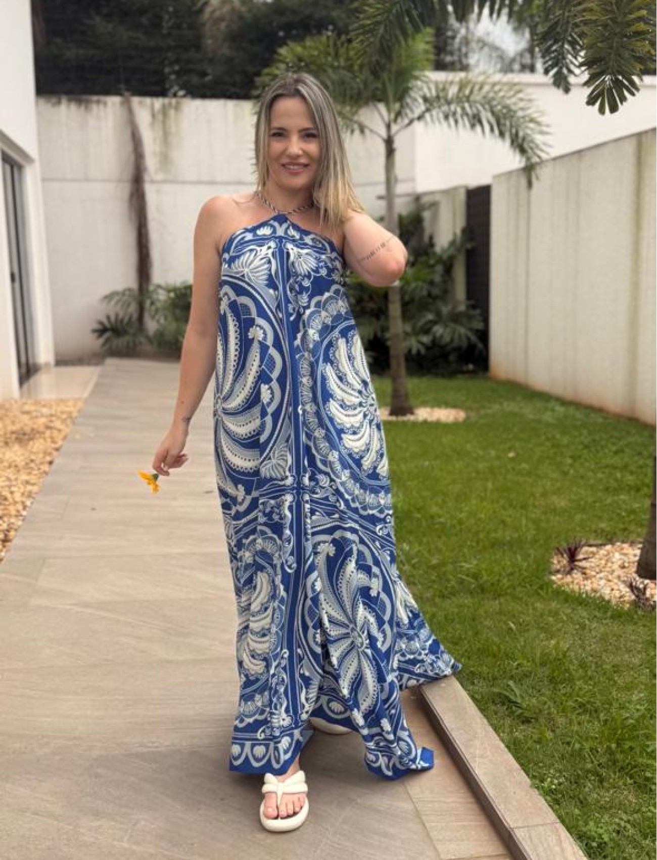 Sugestão de estilo: combine com sandálias rasteiras e bolsa de palha para um look descontraído de verão, ou aposte em plataformas e acessórios dourados para um visual mais sofisticado e marcante.