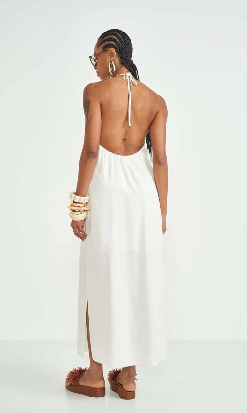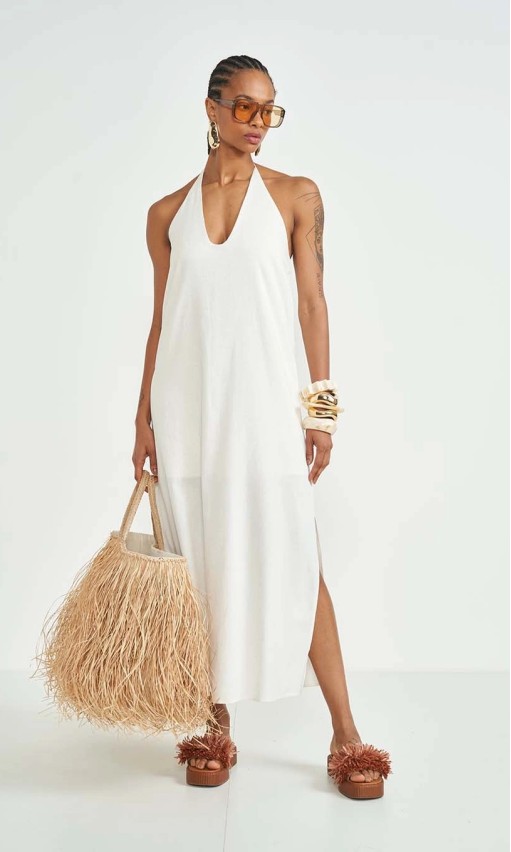 O Vestido Linho Colcci Off Natural é a tradução perfeita de elegância leve e atemporal. Confeccionado em linho misto — tecido conhecido pela textura sofisticada e toque natural — ele oferece frescor, conforto e um caimento impecável que valoriza a silhueta com sutileza.