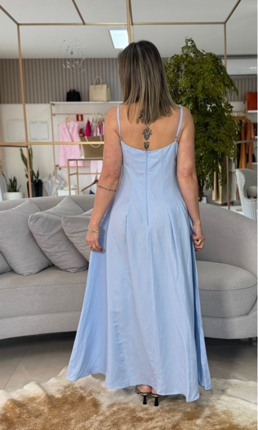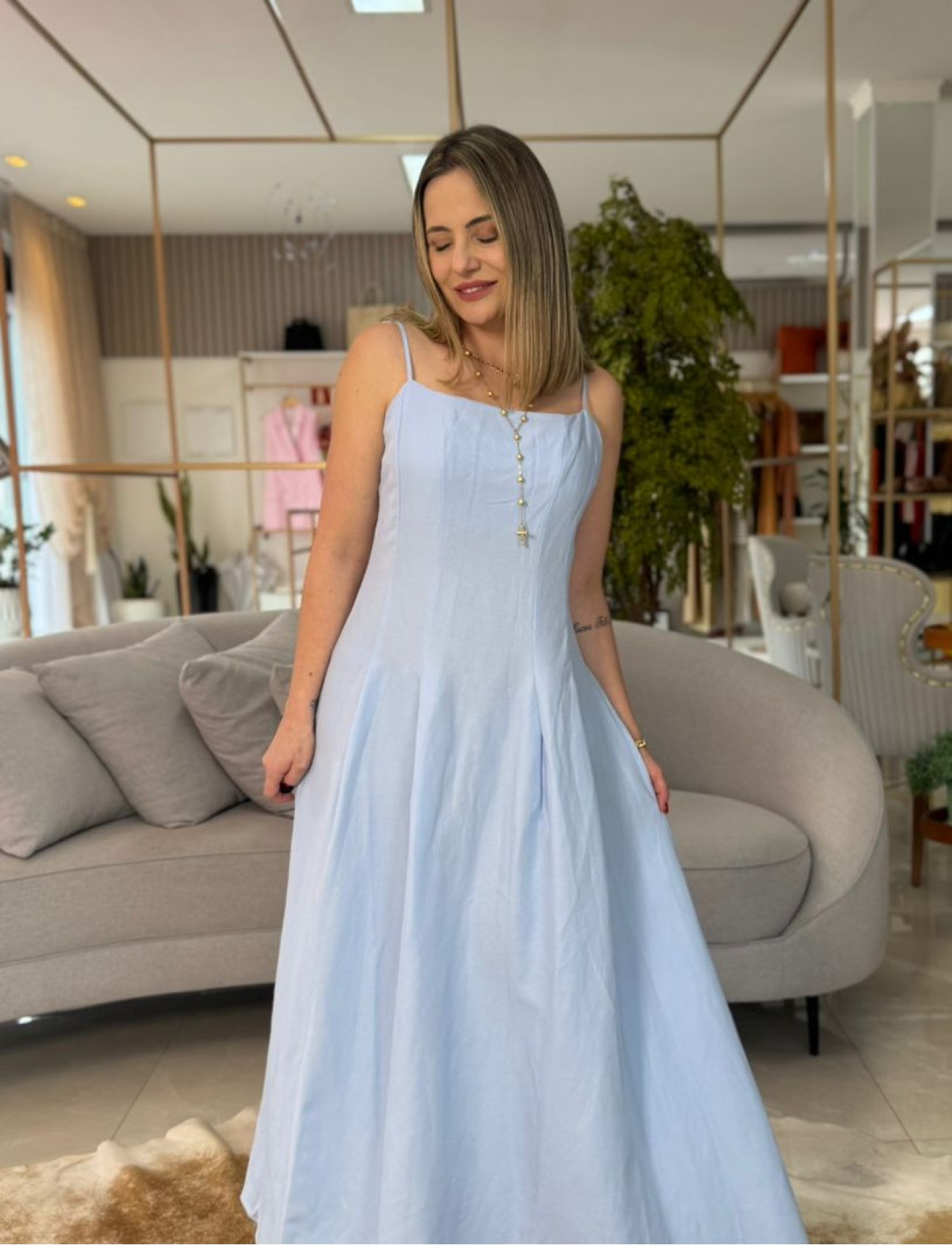 O Vestido Linho Sommer Azul Tranquil Blue une o charme natural do linho à leveza de um design contemporâneo. Confeccionado em tecido de linho com toque suave e caimento estruturado, o modelo apresenta visual sofisticado e atemporal. O tom de azul Tranquil Blue transmite serenidade e frescor, tornando a peça perfeita para produções elegantes e versáteis.