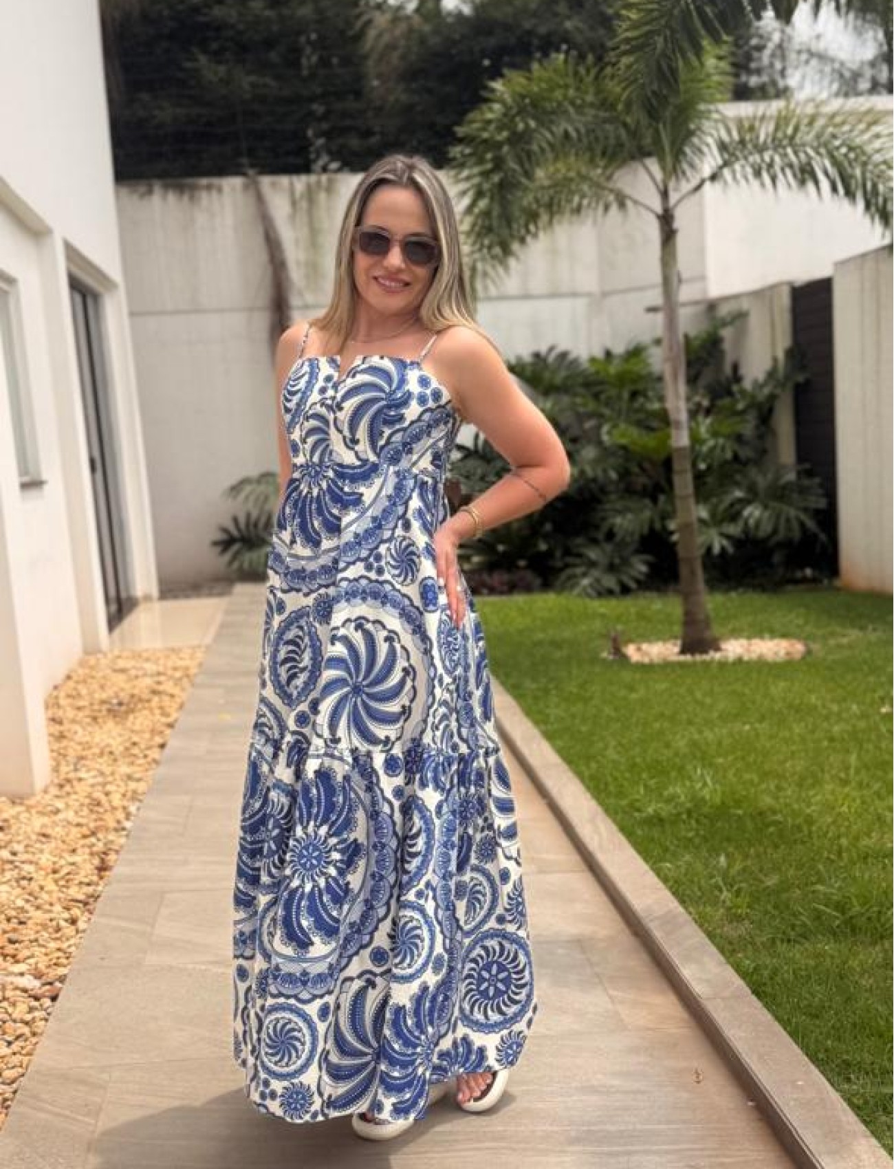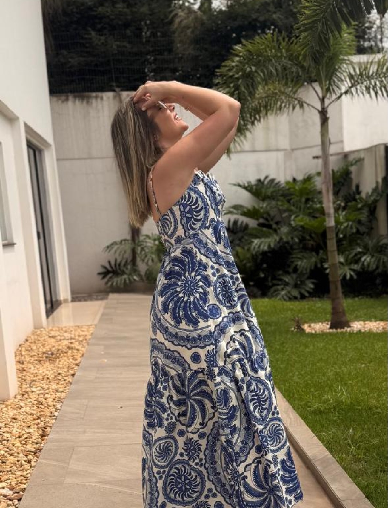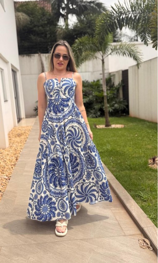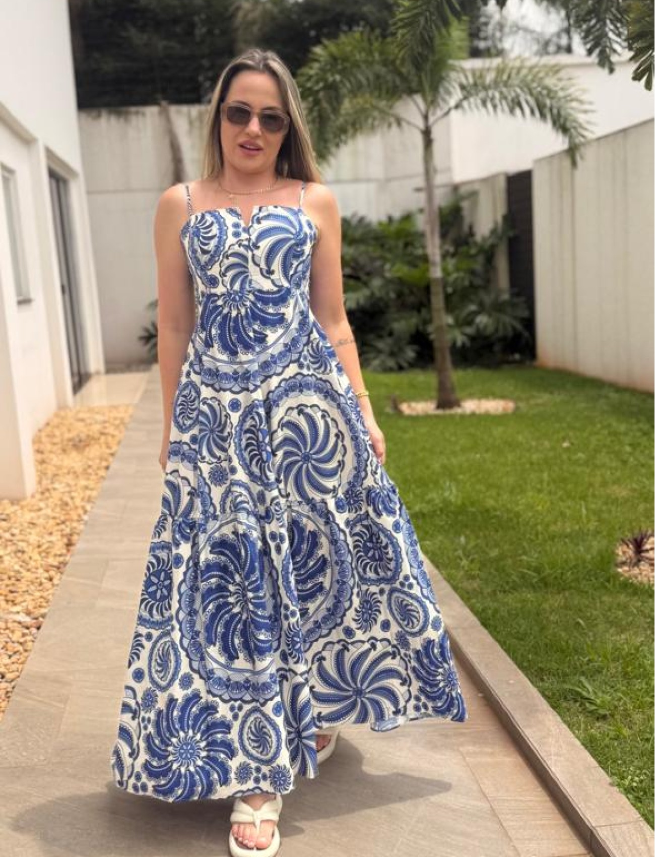 Com um toque tropical e feminino, o vestido longo Delicadeza de Banana aposta na leveza do tecido fluido e na estampa inspirada na natureza para criar produções cheias de frescor. A modelagem valoriza a silhueta com caimento elegante, enquanto o comprimento longo traz sofisticação e movimento. Ideal para dias ensolarados, eventos ao ar livre e ocasiões que pedem charme descontraído.