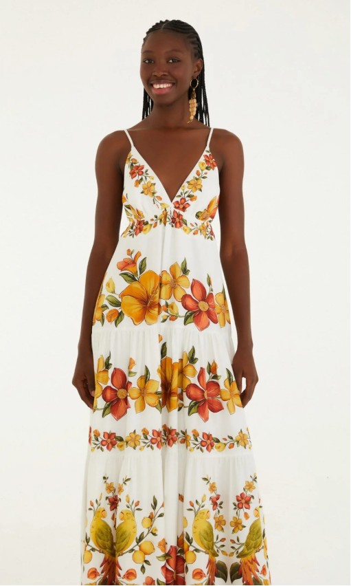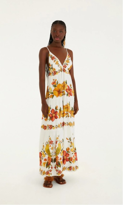 O Vestido Longo Estampado Bosque Chic Farm é a perfeita fusão entre elegância natural e leveza tropical. Confeccionado em tecido fluido, o modelo apresenta estampa Bosque Chic, que une cores suaves e elementos botânicos em uma composição sofisticada e vibrante. O caimento longo e solto cria movimento a cada passo, enquanto o design feminino traduz o espírito livre e alegre característico da Farm.