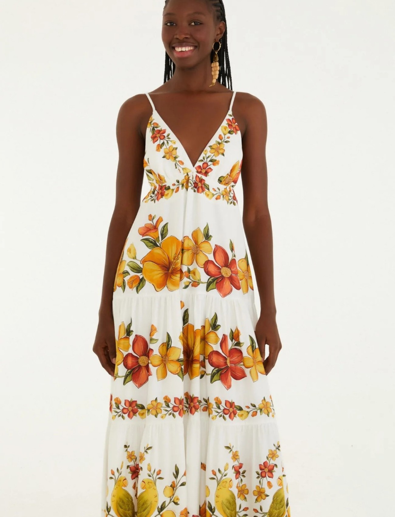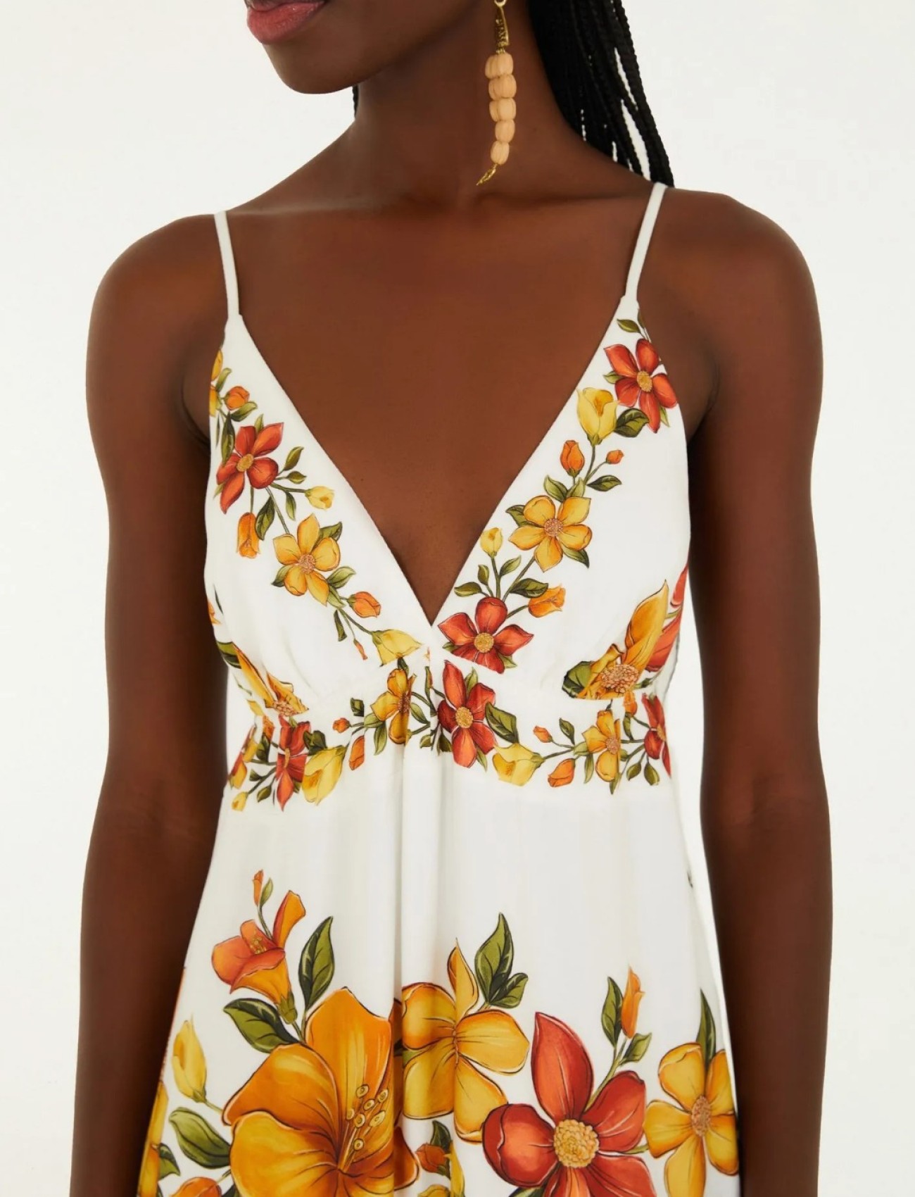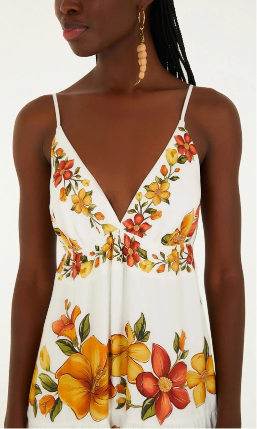 Sugestão de estilo: combine com sandálias de tiras e acessórios em fibras naturais para um look leve e elegante, ou aposte em plataformas e brincos coloridos para um visual marcante e autêntico.
