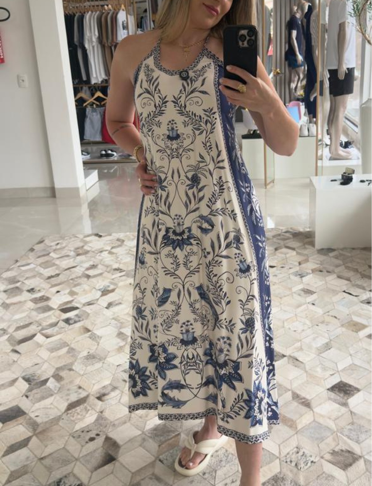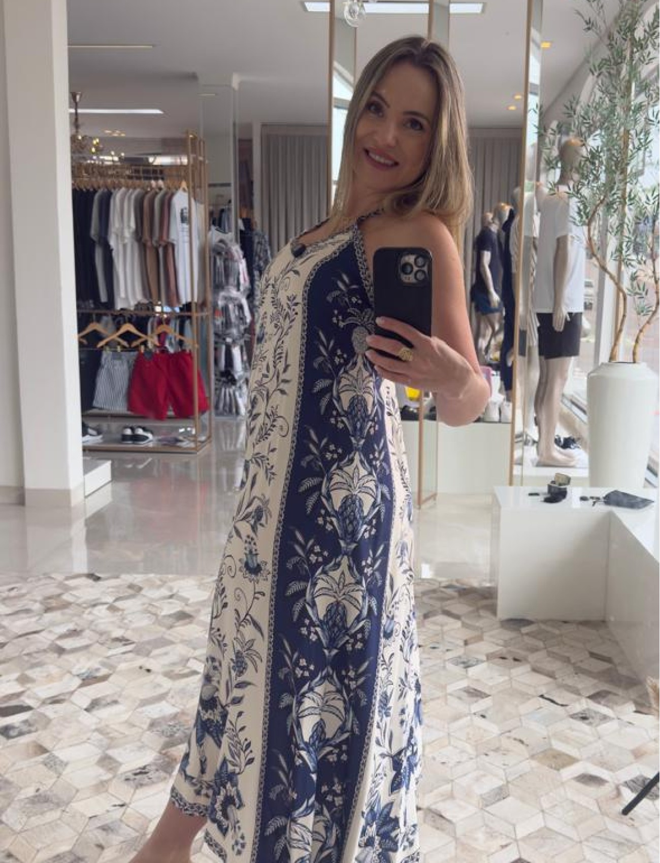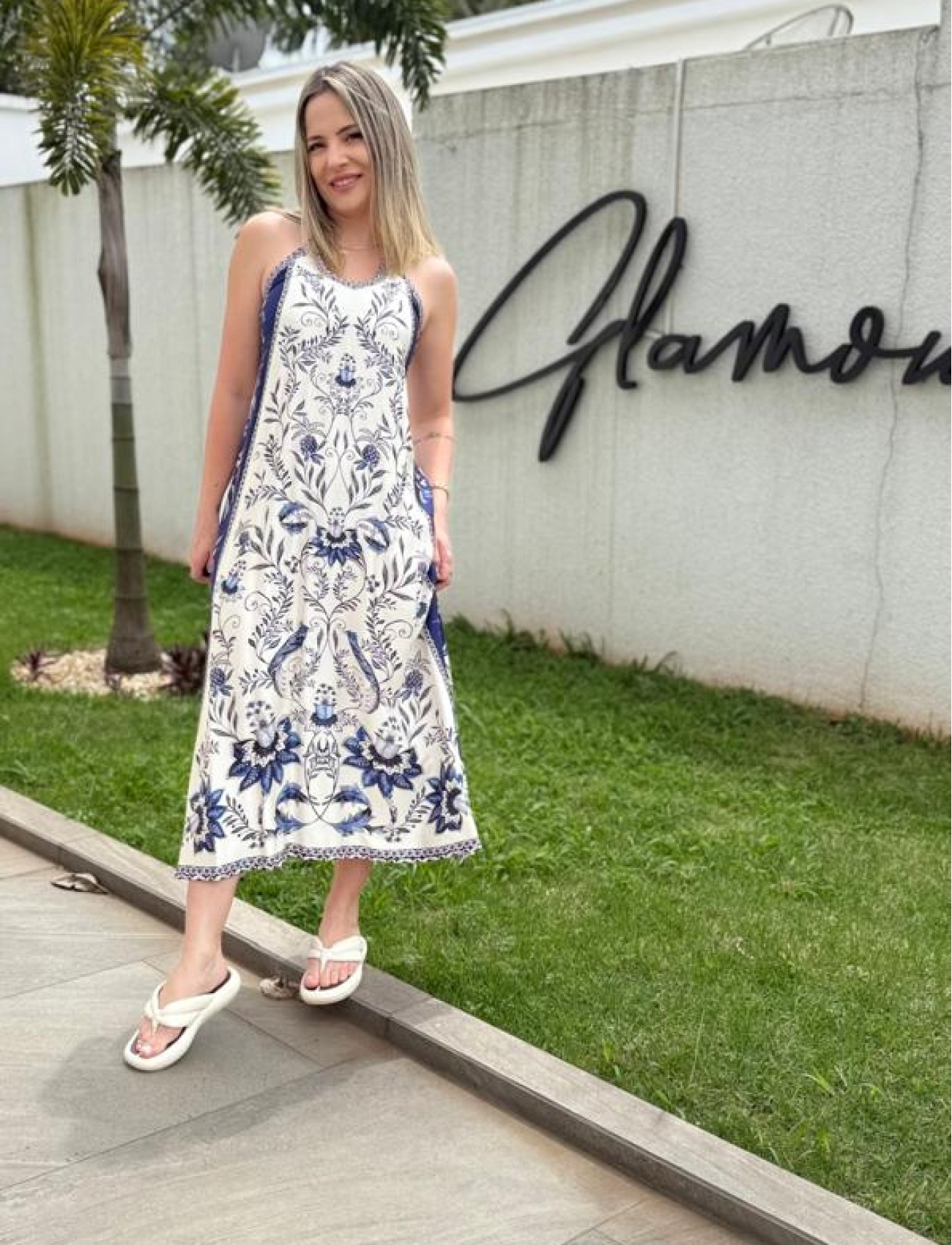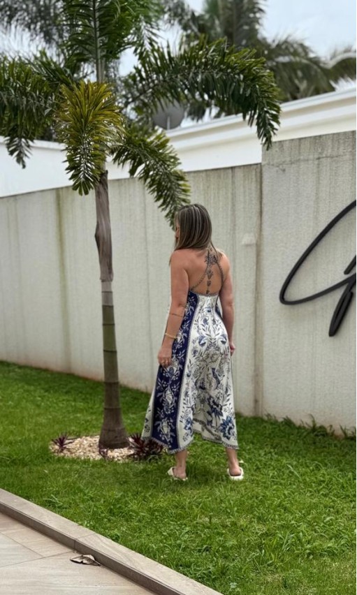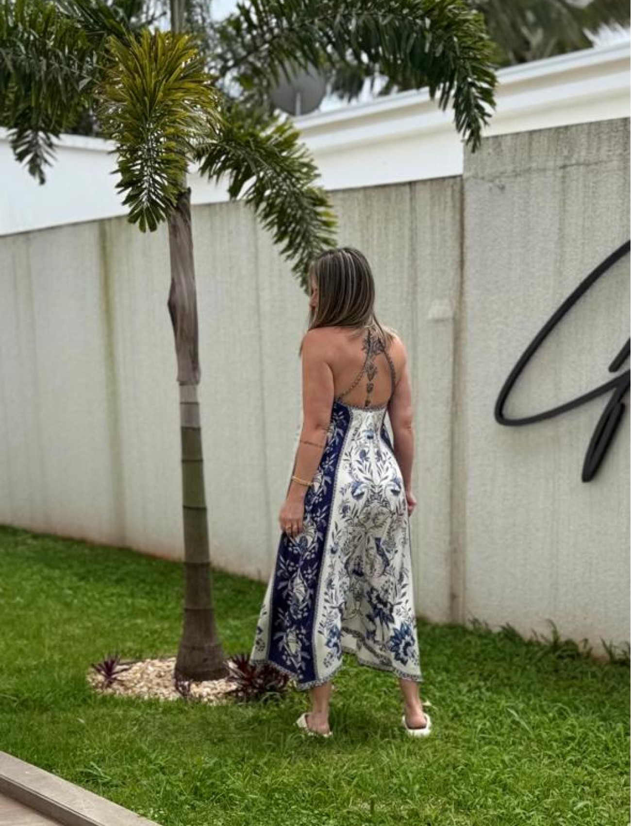 A estampa exclusiva traz toda a identidade visual da marca, enquanto os detalhes da modelagem — como alcinhas, babados ou recortes (ajusto conforme o modelo exato) — completam o visual com charme. Ideal para passeios, produções casuais ou ocasiões especiais com clima tropical.