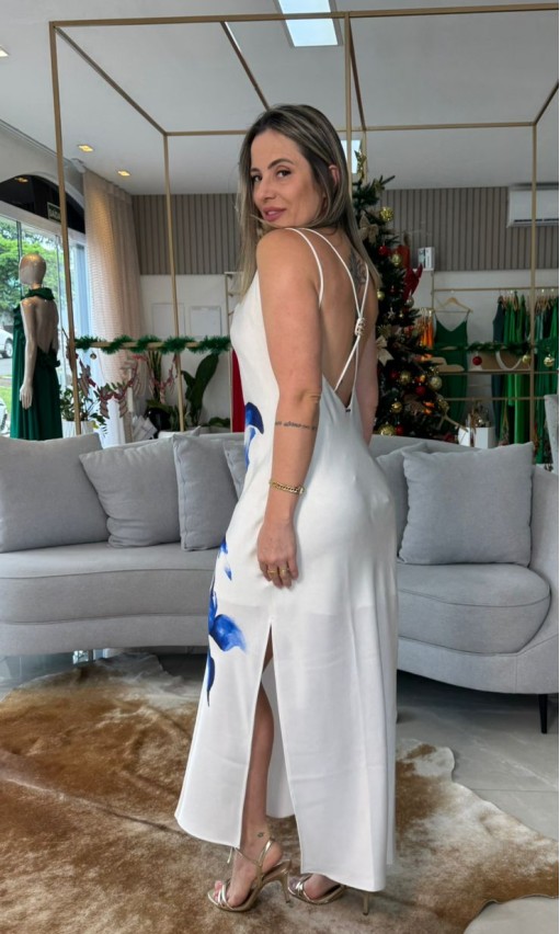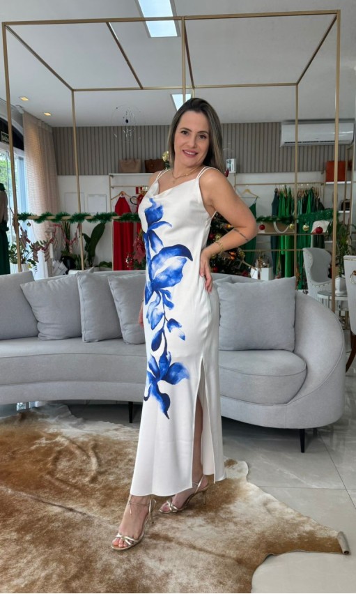 Cor Branco Estampa Azul Flores