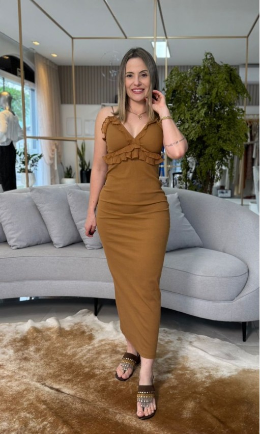 O Vestido Sommer Marrom Evermore com Babados une romantismo e modernidade em uma peça leve e charmosa. Em tom marrom sofisticado, ele traz babados delicados que adicionam movimento e feminilidade ao visual. Com caimento fluido e toque confortável, é ideal para compor produções que vão do dia a dia a ocasiões especiais com elegância descomplicada.