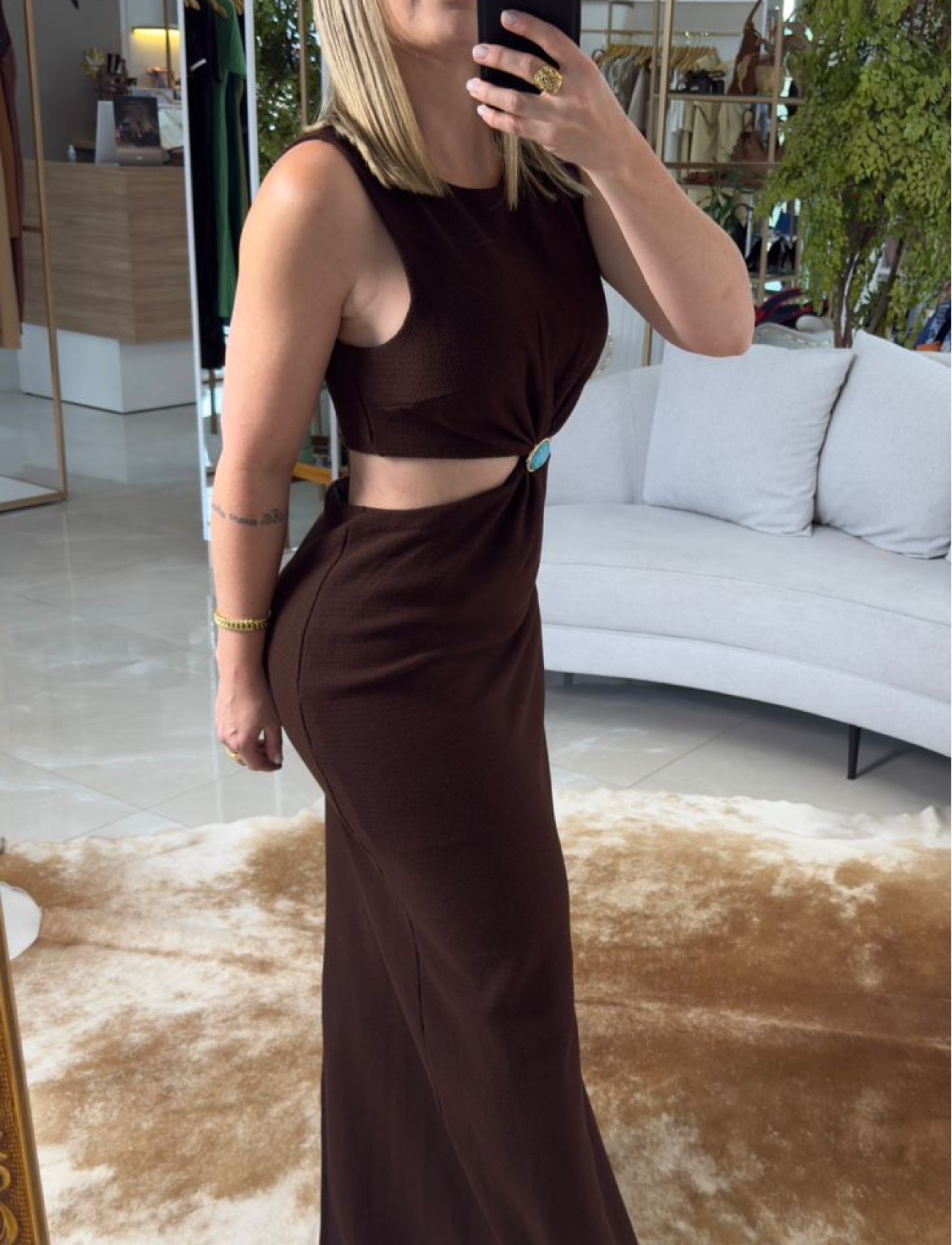 Com design marcante e toque sofisticado, o Vestido Super Midi Sem Manga Lança Perfume é a escolha ideal para quem busca elegância com atitude. Em tom marrom profundo, o modelo ganha destaque pelos recortes laterais estratégicos, que valorizam a silhueta com modernidade e sensualidade na medida certa.