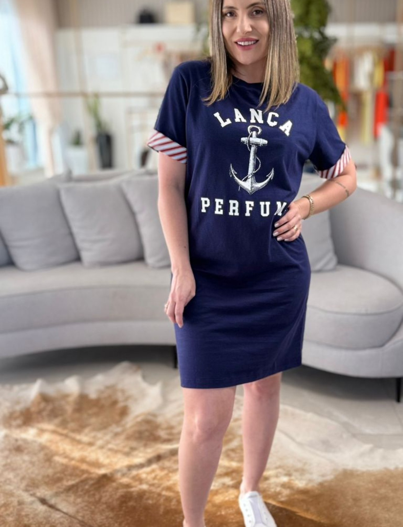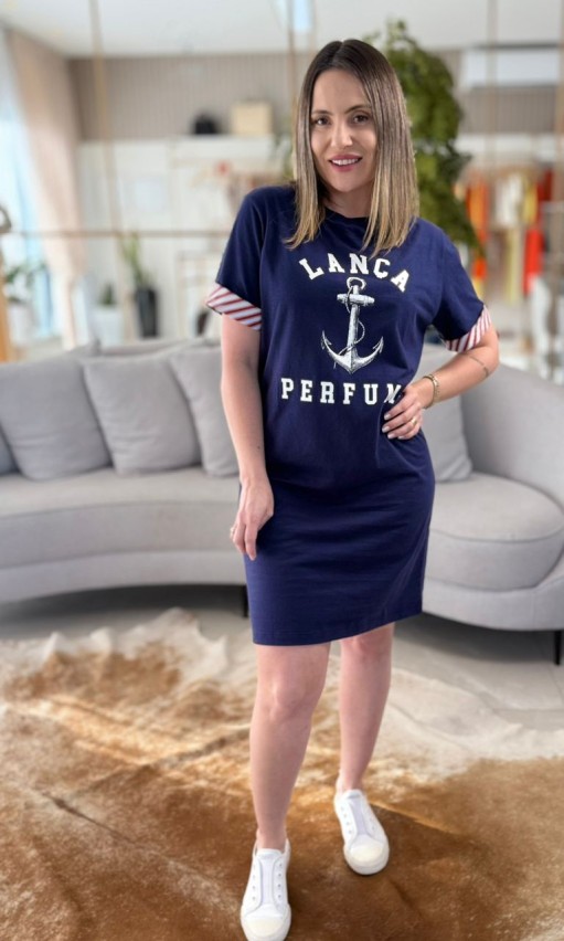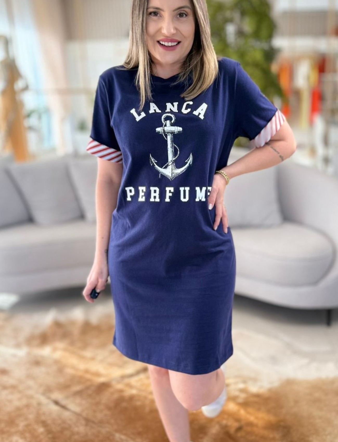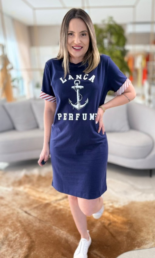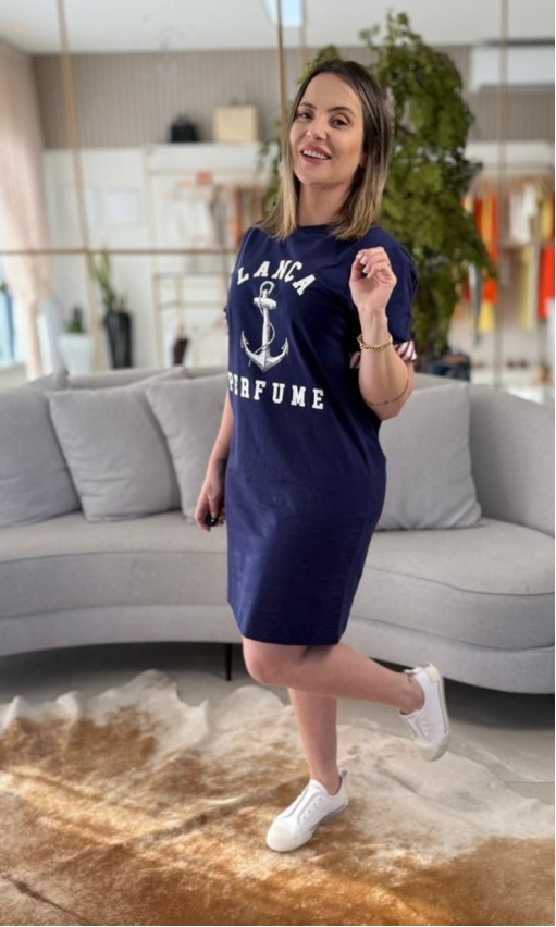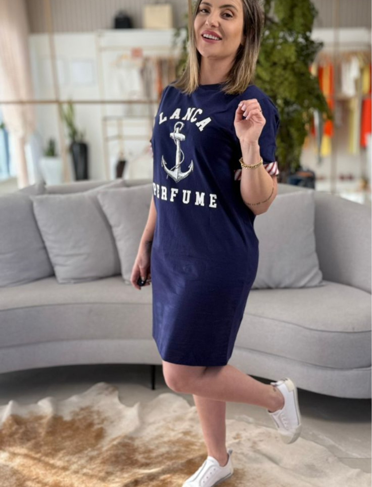 Confortável e moderno, o vestido T-shirt Lança Perfume une praticidade e estilo em uma única peça. Com modelagem soltinha e manga curta, oferece caimento leve e descontraído, perfeito para o dia a dia. Versátil, pode ser usado sozinho ou em sobreposições, garantindo produções casuais cheias de personalidade.